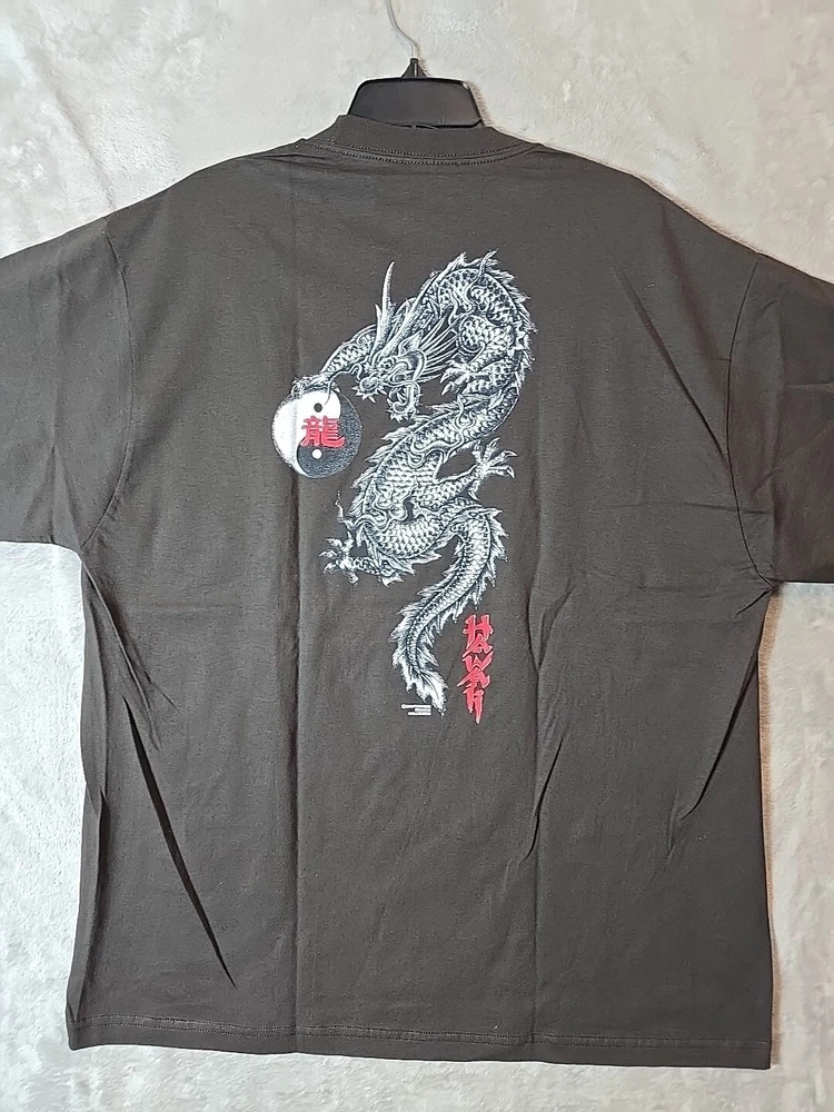 This vintage Fortune Designs Collection t-shirt for men features a graphic print of a dark brown dragon, with a crew neck and short sleeves. The shirt is made of cotton and is machine washable. The size is 2XL and the shirt is a regular fit. The shirt is perfect for those who love nature, art, beach, animals, colorful, Hawaiian, outdoor, and tropical themes. It also features a Yin Yang, tribal, and dragon design. This t-shirt is a great addition to your collection and is perfect for summer, fall, and spring seasons.