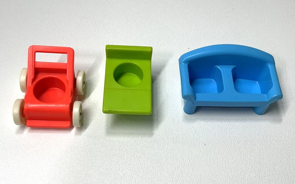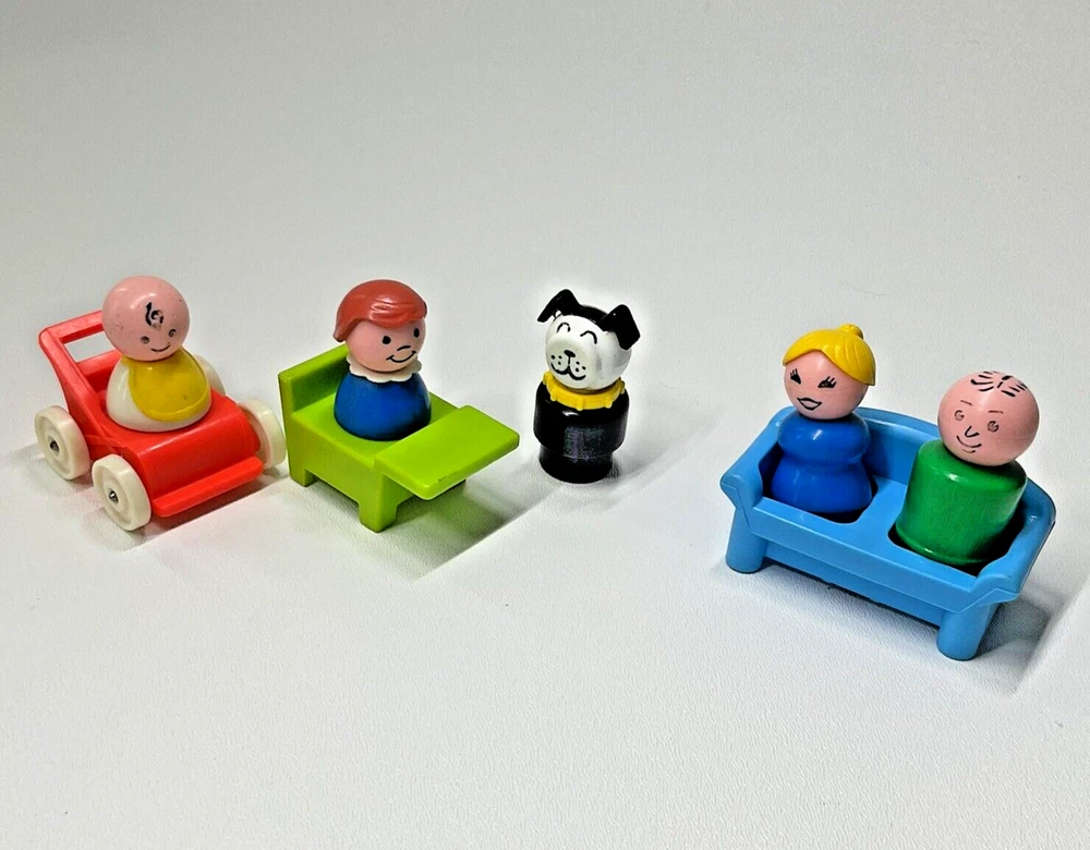 VTG Fisher Price Little People Family Lucky Dog Blue Couch Baby Stroller Desk Lot includes: • Blue Couch • Green Student Desk • Baby Stroller • Baby • Blue Girl with Orange Hair • Blue Woman Blonde • Green Man • Lucky the Dog with Yellow Collar Condition: Used, Vintage with signs of age, use and play. Baby figure has damage on head front/back. Please view all photos, as they are part of the item description. Smoke-Free **Check the Cache of the Day Store for Additional Little People Listings!** ECONOMY SHIPPING US shipping only; Sorry no international shipping PLEASE VIEW ALL PHOTOS FOR A BETTER VISUAL DESCRIPTION OF THE ITEM Vintage and used items may have flaws. A diligent effort is made to research and describe each item accurately and note any flaws, but I am not an expert on many of the items sold and it's possible I might miss something. Please review all photos carefully and read the item description. Feel free to message me with any further questions - Please ask questions prior to purchasing. ~ Thank you! ~