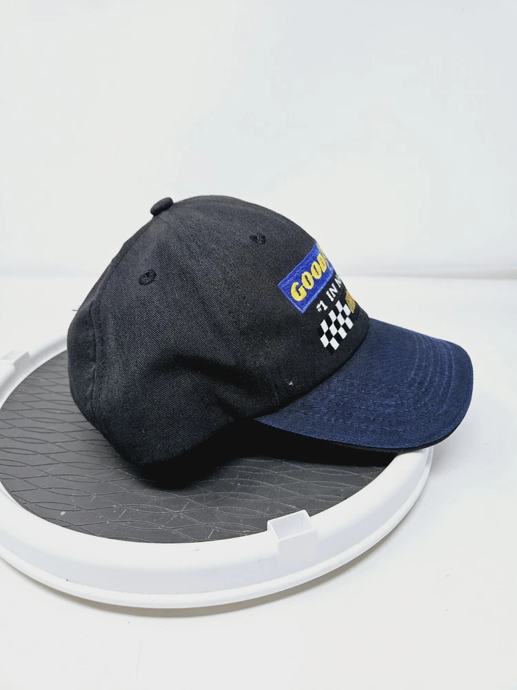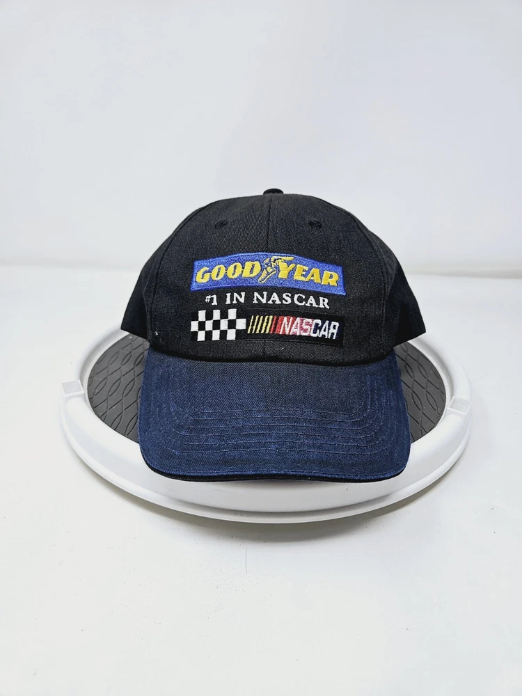 Brand: K-Products Fabric Type: Canvas Vintage: Yes Character: Blue Style: Snapback Country/Region of Manufacture: United States Size: One Size Modified Item: No Department: Men Pattern: Solid gtin13: Does not apply Occasion: Casual Theme: Nascar Goodyear Racing, USA, Cars UPC: Does not apply Adjustment Type: Strapback Color: Black Material: Cotton Features: Nascar Logo Goodyear Logo Checkered Flag