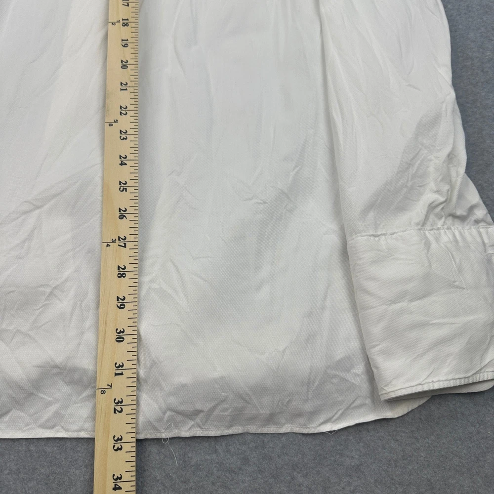 Crisp sophistication defines this Gitman Bros dress shirt, a timeless addition to any discerning gentleman's wardrobe. The classic point collar frames the face with understated elegance, while the long sleeves offer versatility for both formal and casual settings. The button-down design ensures a polished look, whether worn alone or layered under a blazer. The pristine white hue exudes confidence and refinement, making it a staple piece for any occasion. Perfect for a business meeting, a formal dinner, or a stylish night out, this shirt will elevate your look with its impeccable tailoring and timeless appeal. Color: White Department: Men Type: Dress Shirt Neck Size: 17.5 in Fit: Regular Sleeve Length: Long Sleeve Pattern: Solid Material: 100% Cotton, Cotton Blend Collar Style: Point Character: Classic, Sophisticated, Elegant, Refined Top Cuff Style: Barrel Cuff Features: Breathable, Pockets Neckline: Collared Keywords: Gitman Bros, dress shirt, long sleeve, button down, point collar, white shirt, men's dress shirt, formal shirt, business shirt, classic fit, cotton shirt, men's clothing, size 17 1/2 35