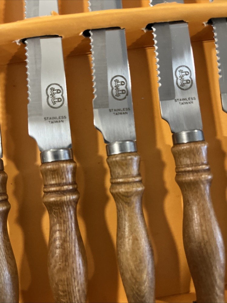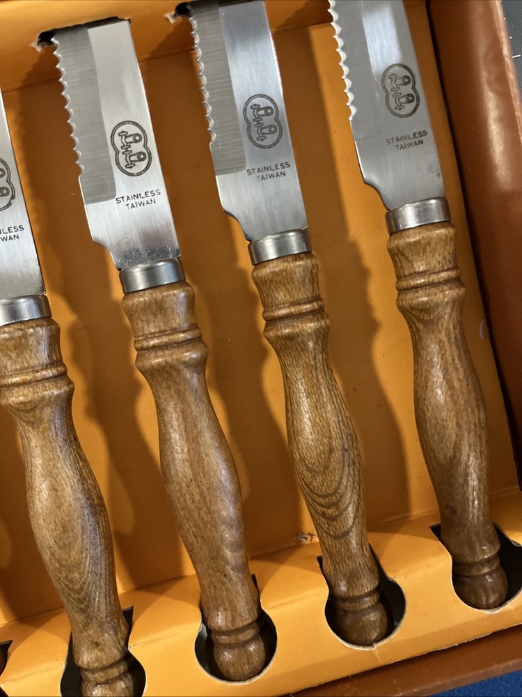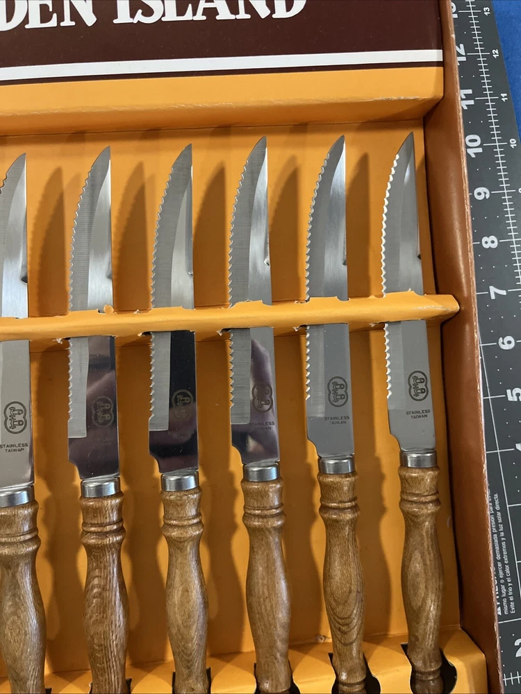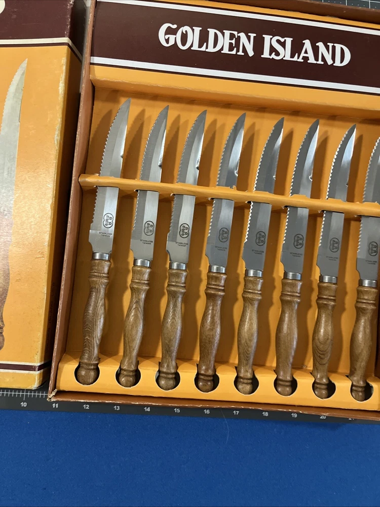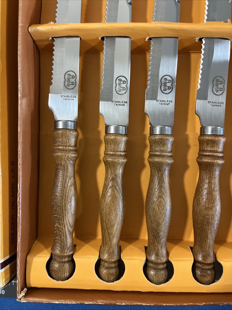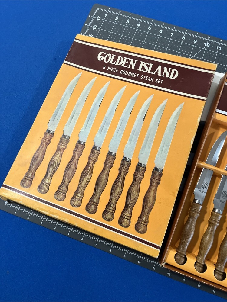 VTG Golden Island 8-Piece Gourmet Steak Knife Set Stainless Wood Handle - New