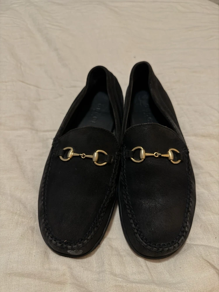 VTG Gucci Gold Horsebit Suede Loafers Black mens 9.5 dress shoes slip on