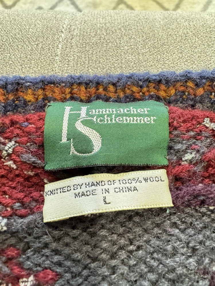 VTG HAMMACHER SCHLEMMER 100% WOOL HAND KNIT BIGGIE COSBY TRIBAL INSPIRED SZ L