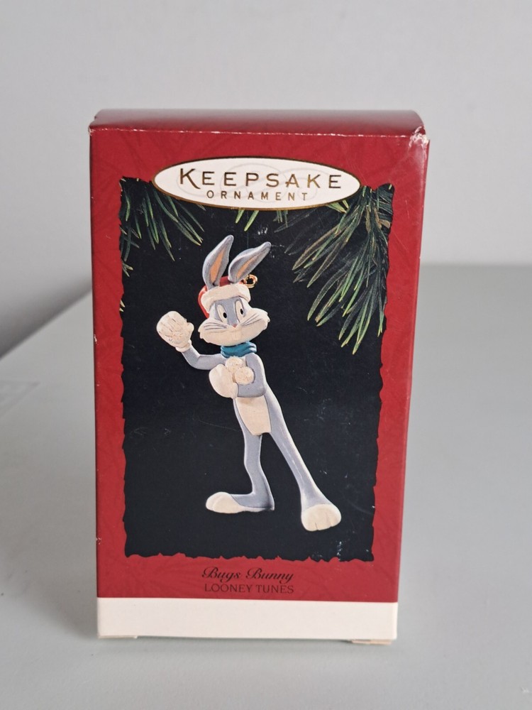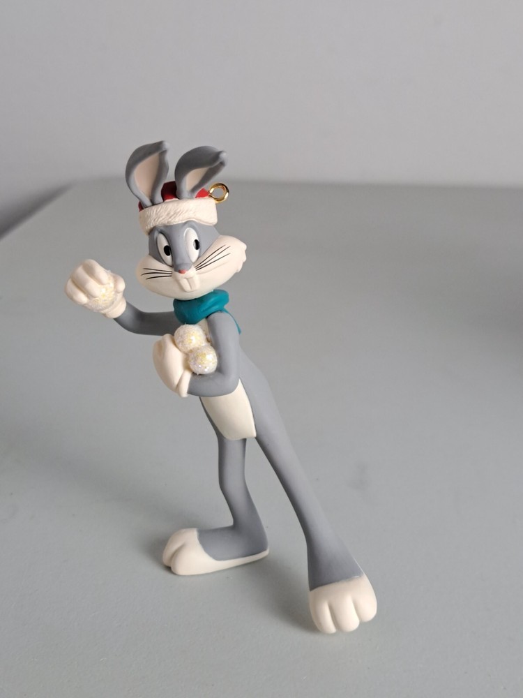 Vintage Hallmark Keepsake Looney Tunes 1995 Bugs Bunny In Santa Hat Snowballs 4" Ornament is in Nice Pre-Owned Condition. SUPER CUTE!!