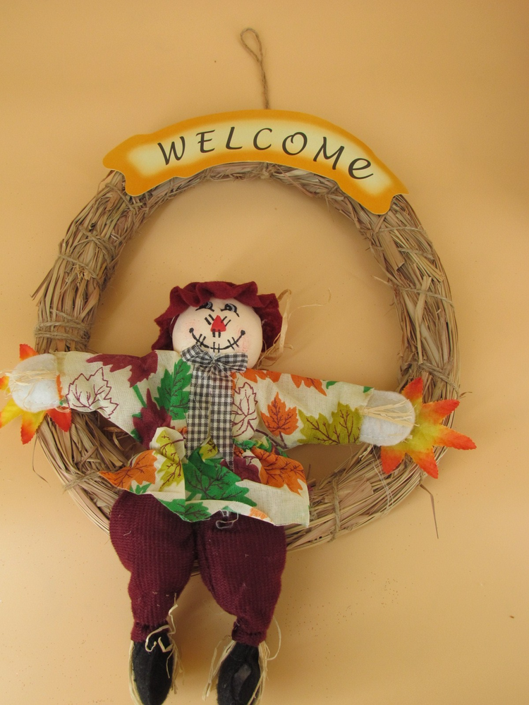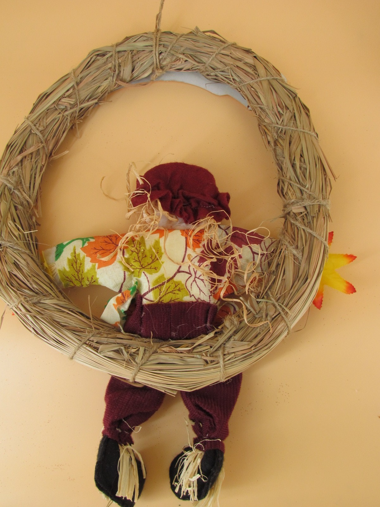 VTG 12-Inch Straw Wreath with Fall Leaves for Seasonal Decor