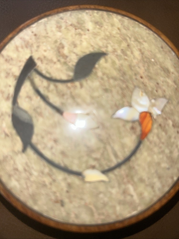 Finish: Stone Material: Stone Item Height: 1.25 Inches Department: Girls, Boys, Kids, Teens, Adults Color: Multicolor Occasion: All Occasions Featured Refinements: Vintage Trinket Box UPC: Does Not Apply Handmade: Yes Subject: Floral Care Instructions: Easy Care, Clean with Dampen Cloth Size: Small Suitable For: Jewelry, Trinkets Theme: Flowers Engraved: No Character: Flower Features: Hand Carved, Lattice, Mother of Pearl Inlay Closure Type: Lid Room: Any Room, Bathroom, Bedroom Shape: Round gtin13: Does Not Apply Additional Parts Required: No Character Family: Flowers Number in Pack: 1 Brand: Unbranded Custom Bundle: No Pattern: Flower Item Width: 3 7/8 Customized: Yes Type: Trinket Box Packaging: Unboxed Original/Reproduction: Original Country/Region of Manufacture: Unknown Style: Traditional Modified Item: No