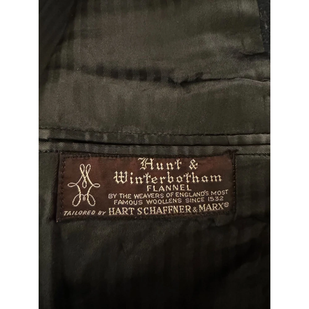 VTG Hart Schaffner Marx Tweed Blazer Men 42L Navy Wool Flannel Sport Coat Jacket Good pre-owned condition. FLAW: small hole on back of right sleeve; loose stitching on inner vent; no size tag - other items of similar measurements indicate it is likely a 42L (please see photos) Additional signs of normal wear may be present. Please see all photos. *Vintage, rare or flawed items are a final sale and non-refundable. Please confirm the photos and measurements in the listing align with your needs prior to any offers/purchase. Size: 42L - Flannel supplied by Hunt & Winterbotham, weavers of England's most famous woolens since 1532. (Measurements in photos) Ships FAST & AFFORDABLE - next business day. - All Offers welcome -
