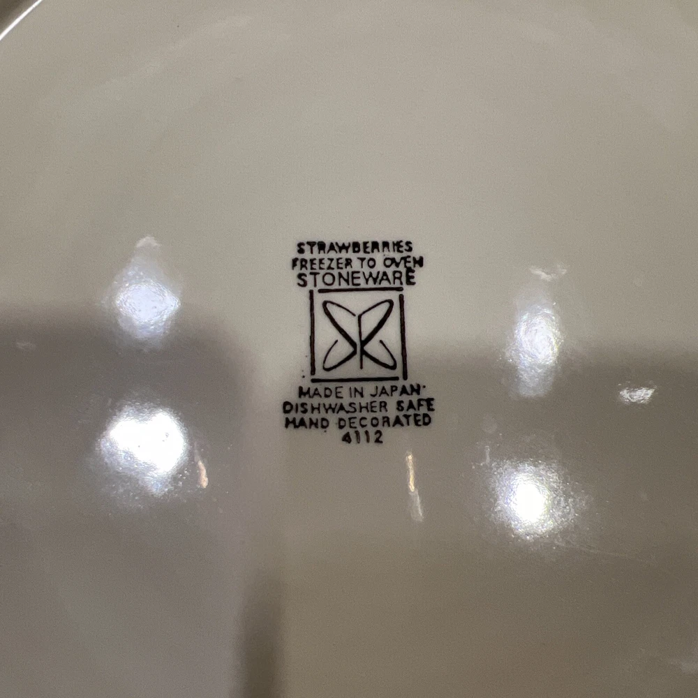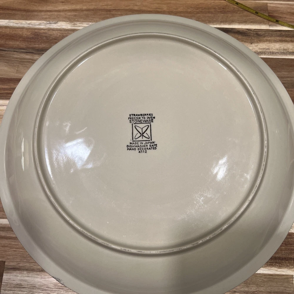 Production Technique: Pottery Production Style: Art Pottery Product Line: Strawberry Vintage: Yes Material: Ceramic Finish: Glossy gtin13: Does not apply Theme: Strawberries UPC: Does not apply Occasion: All Occasions Type: Dinner Plate Original/Reproduction: Vintage Original Set Includes: Platter Brand: Stoneware Origin: Japan Featured Refinements: Decorative Stoneware Pattern: Strawberries Shape: Round Color: Beige Plate Diameter: 12 In Number of Items in Set: 1 Item Weight: 2.4 Lb Country/Region of Manufacture: Japan Features: Decorative