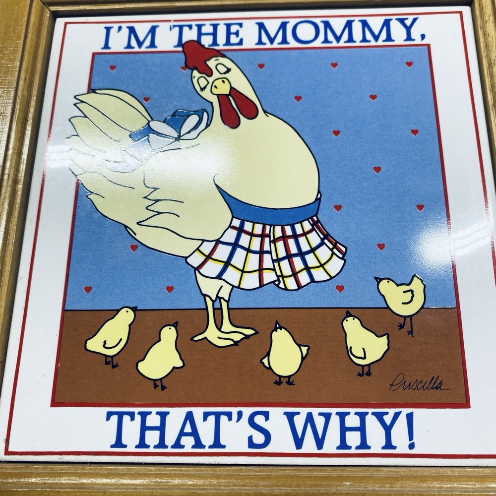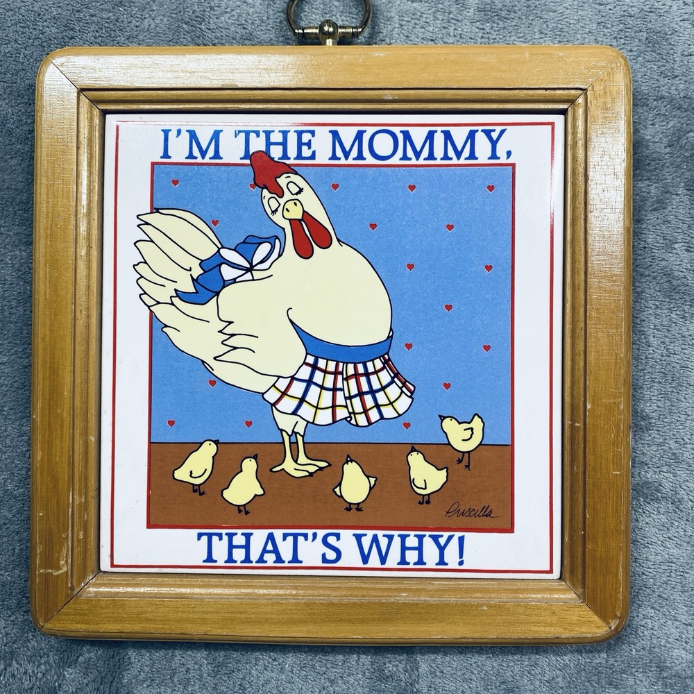 VTG I'm The Mommy That's Why Tile Chicken Farmhouse Kitschy Framed Wood Wall Art Add a touch of quaint charm to your home with the VTG "I'm The Mommy That's Why" Tile Chicken Farmhouse Kitschy Framed Wood Wall Art. This delightful piece, from Figi Giftware, captures the essence of farm life and parenting with a humorous twist, featuring a colorful chicken design that's sure to spark conversation and bring a smile to anyone's face. Crafted with care, this square-shaped wall art is made from quality wood and ceramic materials, ensuring durability and long-lasting beauty. The item comes ready to hang, with a bordered and framed design that's perfect for any room. Its versatile style fits seamlessly into a farmhouse-themed décor, while the hanging bracket allows for easy display in your favorite space. Tile with frame is 7.5 inches square. The hanging hook is roughly 1.25 inches from top of frame. See photos for the actual item available. Feel free to contact me with any questions. Shop our store with confidence as we offer 30-day returns on all purchases. Additionally you can save money by making multiple purchases to take advantage of our discount shipping policy. You will pay the highest shipping cost for a single item in your cart and $3 for each additional item.