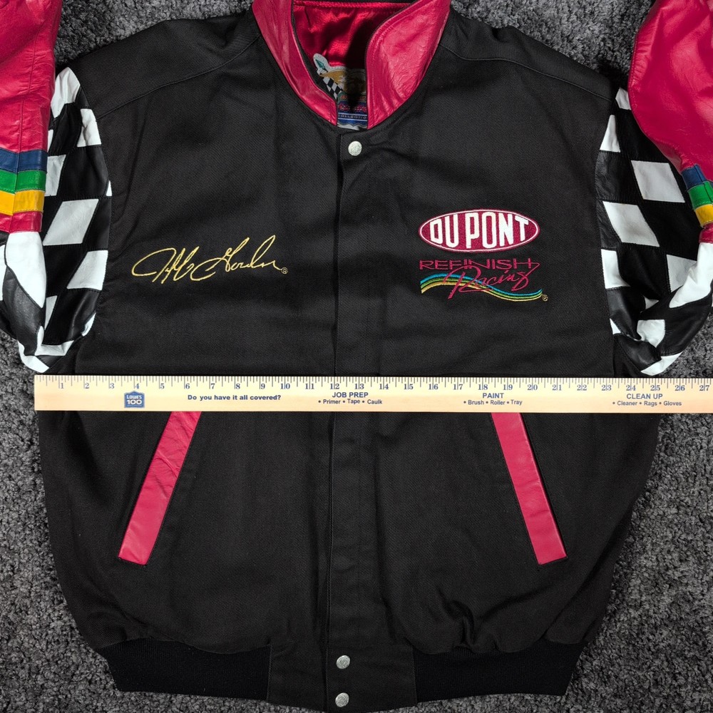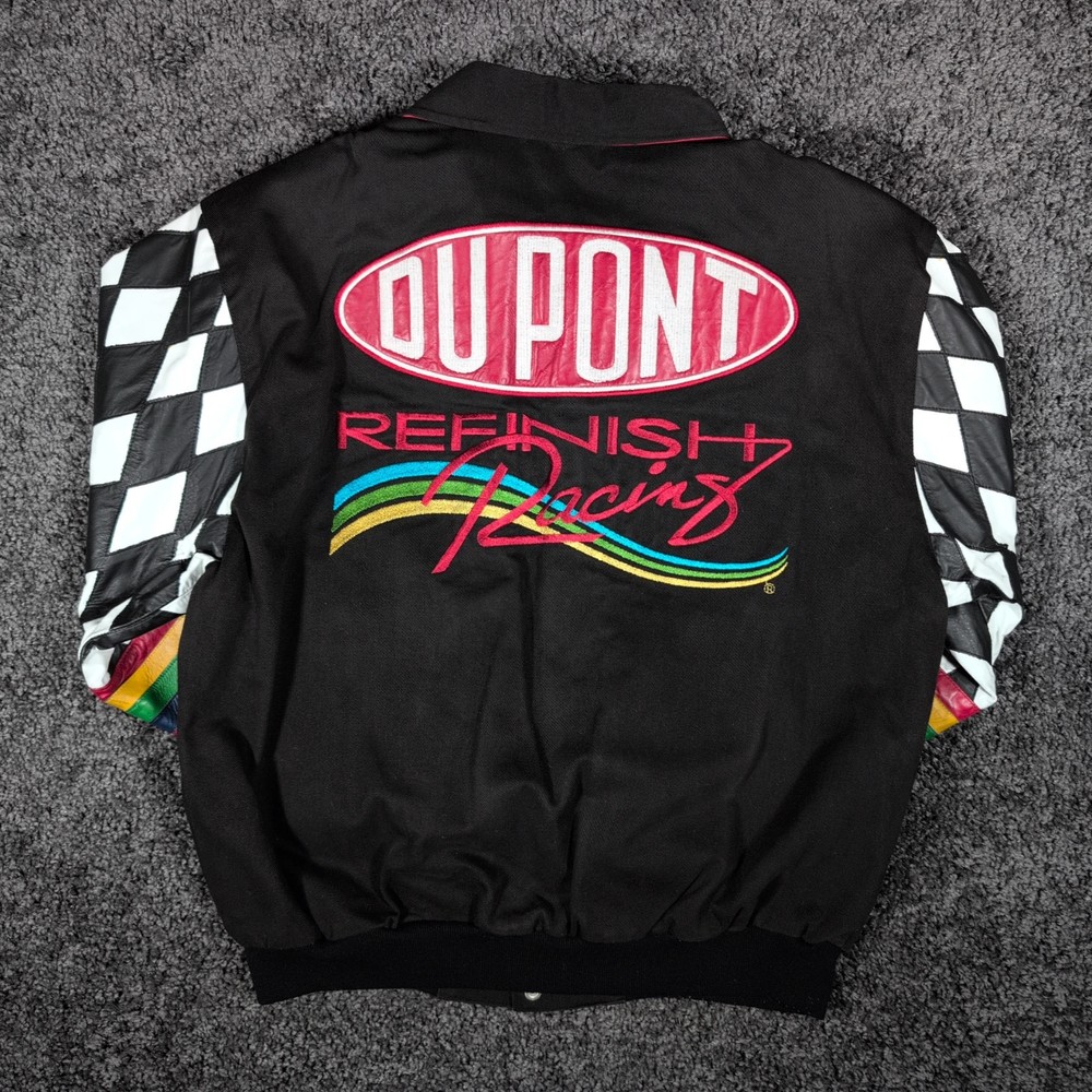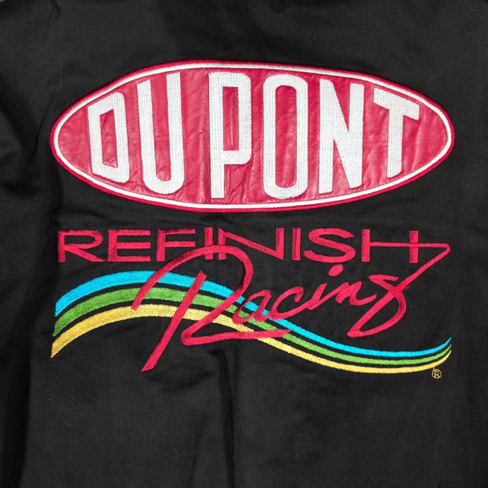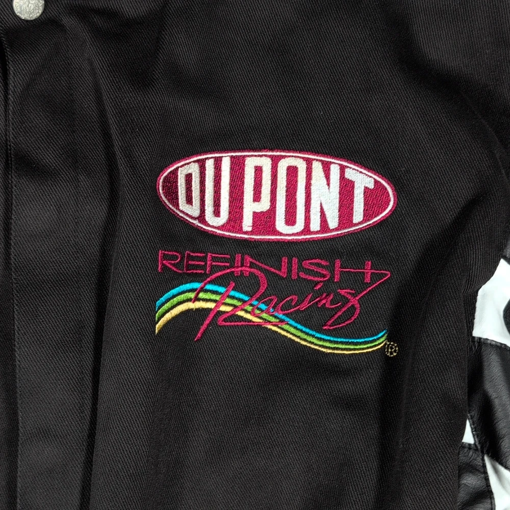 Vintage 90s Jeff Hamilton racing jacket featuring a black cotton twill body with genuine leather collar and sleeve trim, bold DuPont Refinish embroidery, and iconic Jeff Gordon #24 details. Check pictures and item specifics for details or contact us with any questions. If you like this item and would like to see more like it, click the link below to check out our store. 523 Supplier LLC | eBay Store Return Policy : Customer satisfaction is important to us. Good communication is crucial for eBay sales. Before leaving feedback, please notify 523 Supplier LLC about any concerns using eBay messaging. Items must be returned in original condition, with tags if applicable, or a restocking fee will be charged. Buyers are responsible for return postage . If the wrong item was shipped, we will refund the entire amount including return shipping.