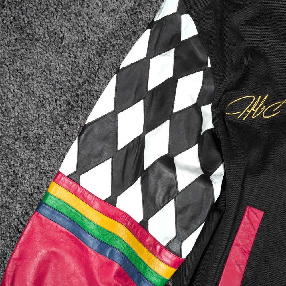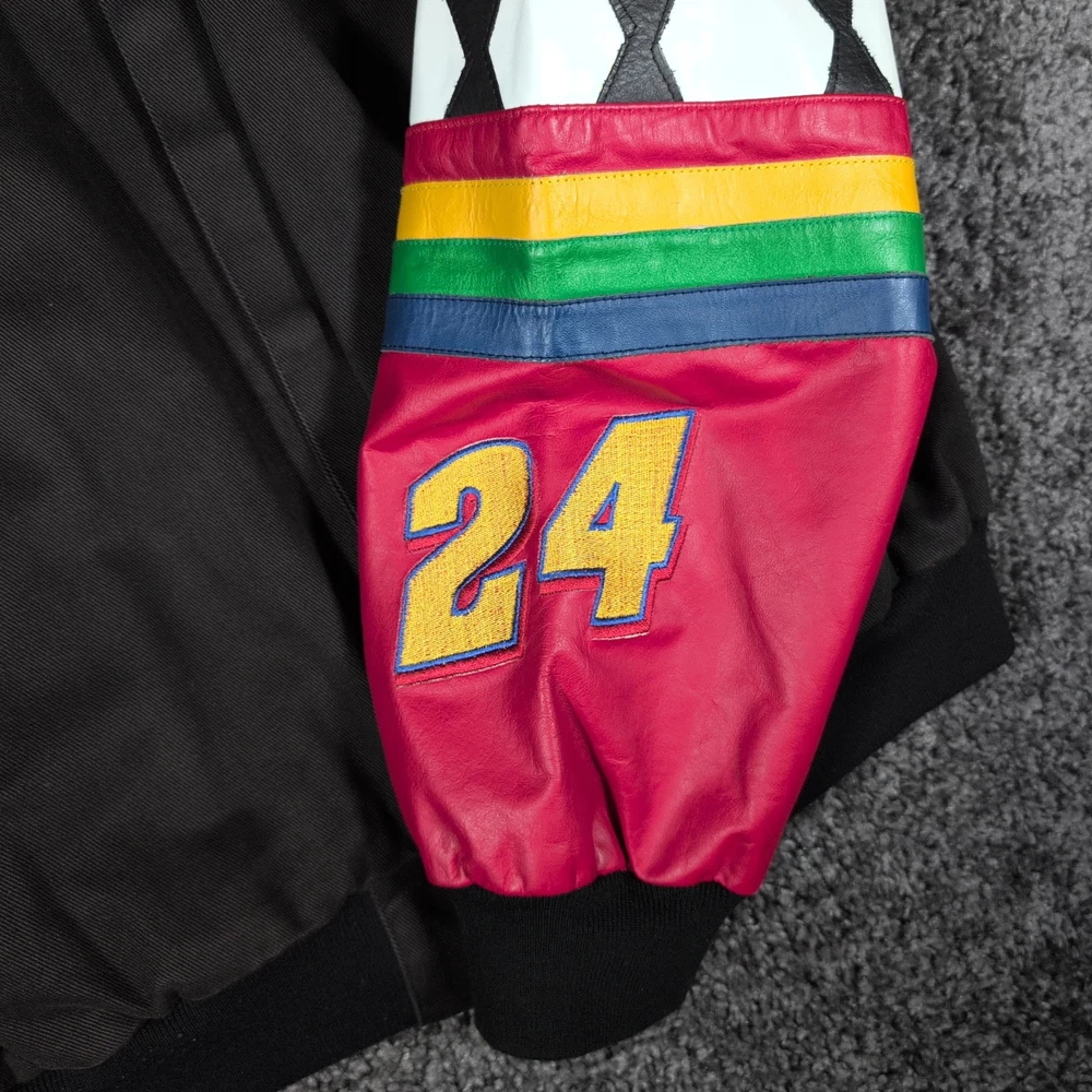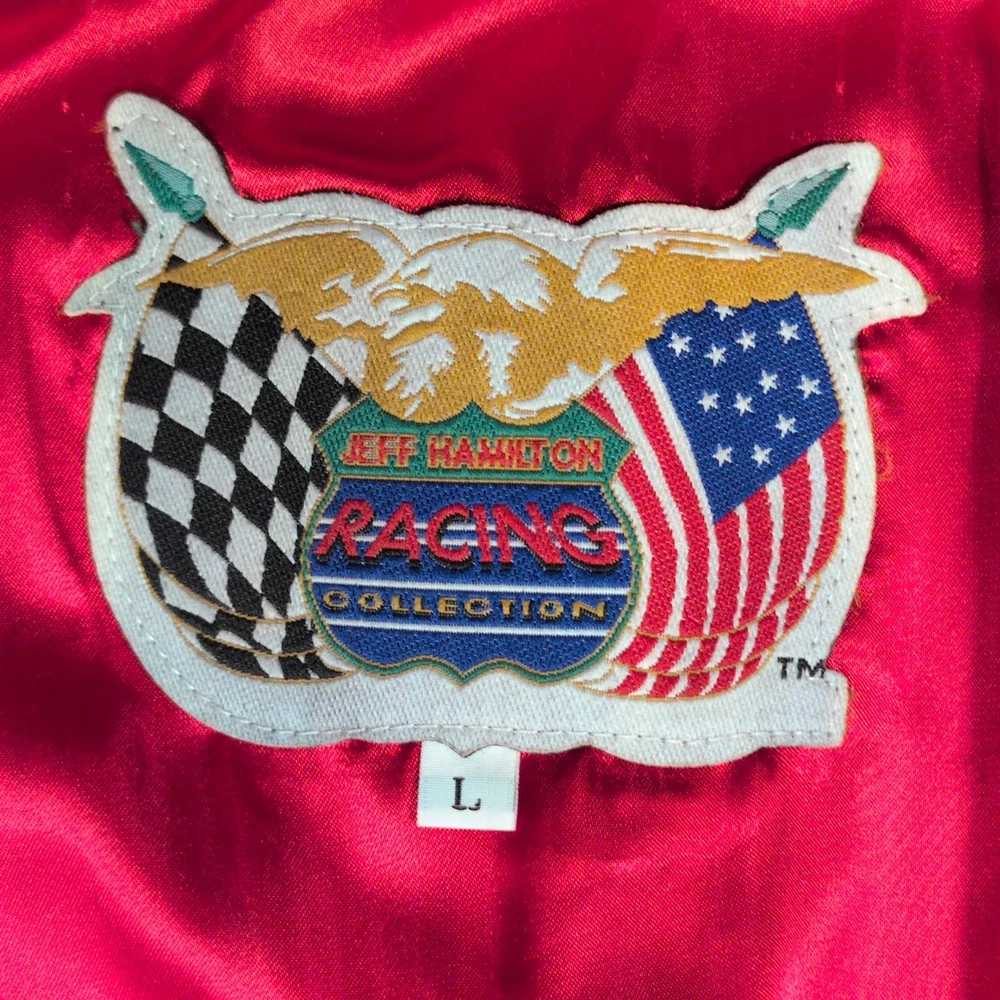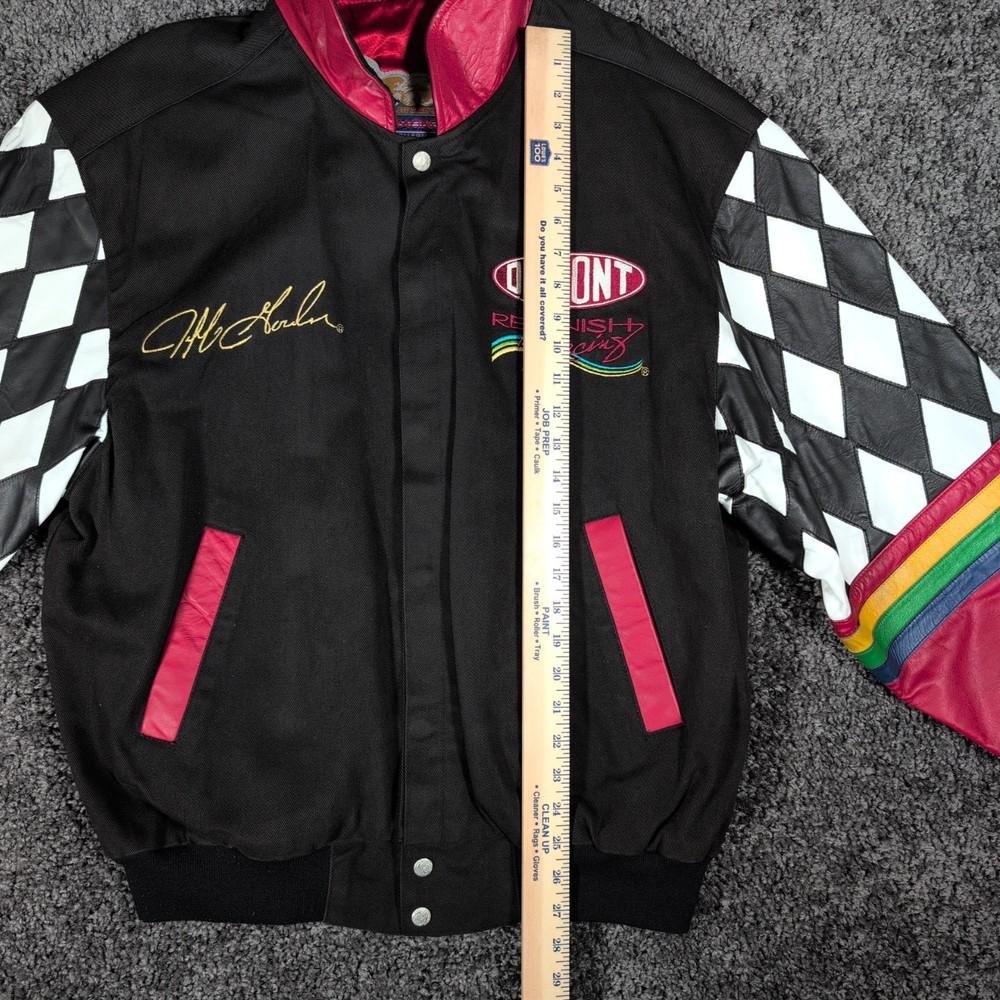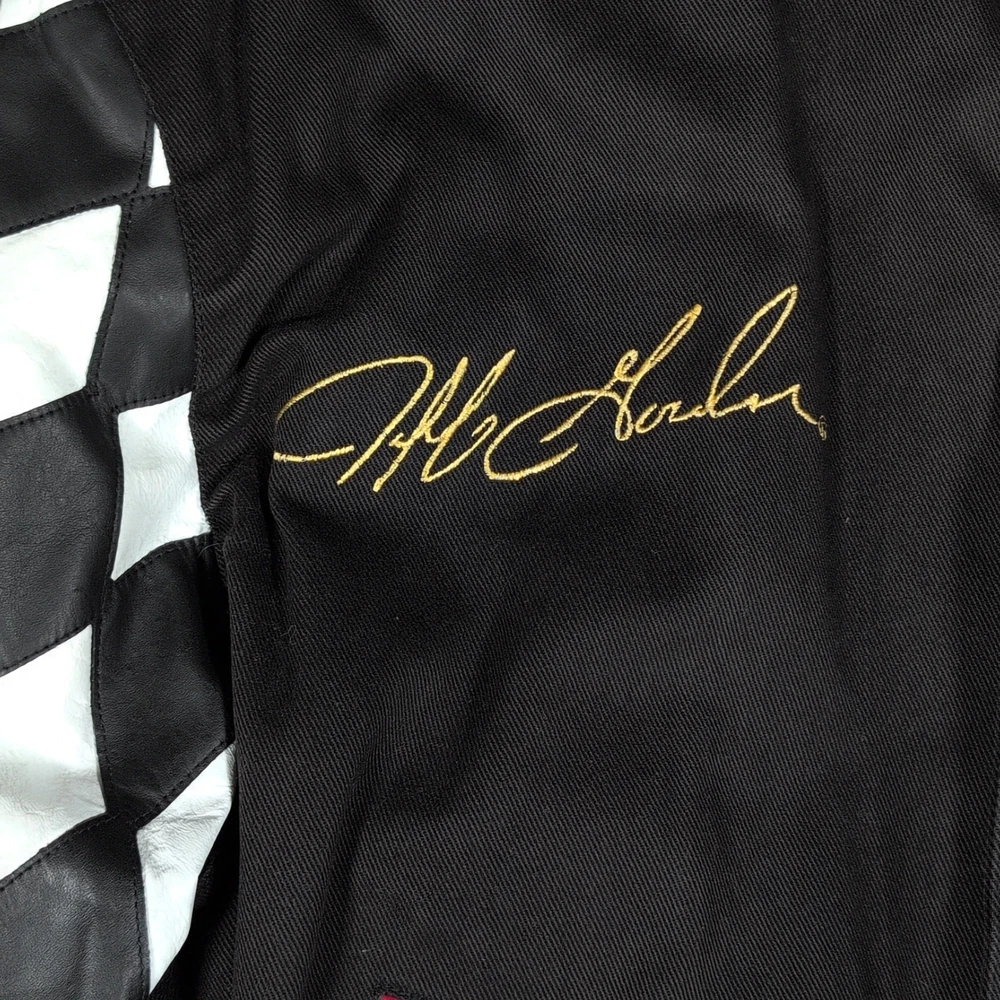 Vintage 90s Jeff Hamilton racing jacket featuring a black cotton twill body with genuine leather collar and sleeve trim, bold DuPont Refinish embroidery, and iconic Jeff Gordon #24 details. Check pictures and item specifics for details or contact us with any questions. If you like this item and would like to see more like it, click the link below to check out our store. 523 Supplier LLC | eBay Store Return Policy : Customer satisfaction is important to us. Good communication is crucial for eBay sales. Before leaving feedback, please notify 523 Supplier LLC about any concerns using eBay messaging. Items must be returned in original condition, with tags if applicable, or a restocking fee will be charged. Buyers are responsible for return postage . If the wrong item was shipped, we will refund the entire amount including return shipping.