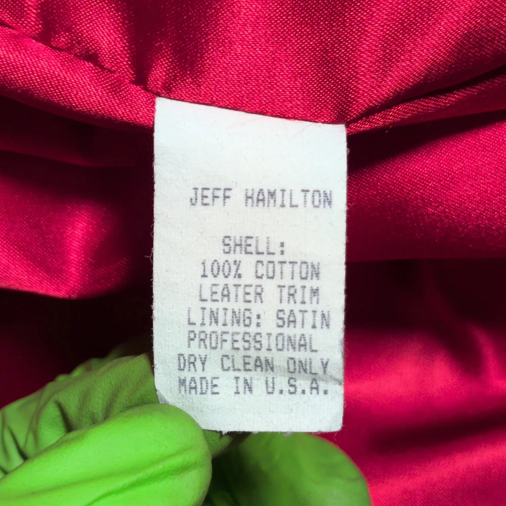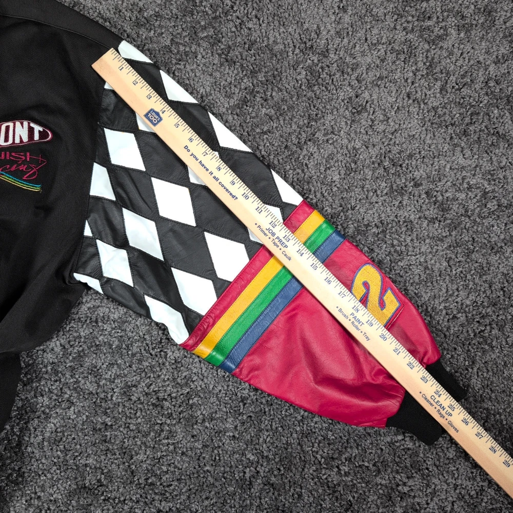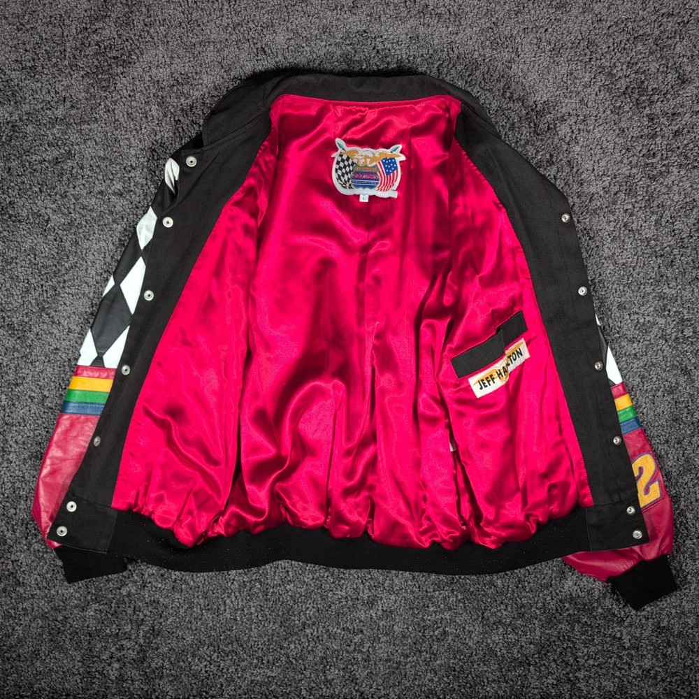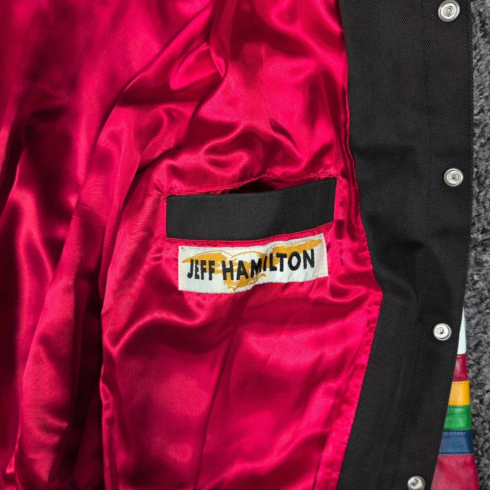 Vintage 90s Jeff Hamilton racing jacket featuring a black cotton twill body with genuine leather collar and sleeve trim, bold DuPont Refinish embroidery, and iconic Jeff Gordon #24 details. Check pictures and item specifics for details or contact us with any questions. If you like this item and would like to see more like it, click the link below to check out our store. 523 Supplier LLC | eBay Store Return Policy : Customer satisfaction is important to us. Good communication is crucial for eBay sales. Before leaving feedback, please notify 523 Supplier LLC about any concerns using eBay messaging. Items must be returned in original condition, with tags if applicable, or a restocking fee will be charged. Buyers are responsible for return postage . If the wrong item was shipped, we will refund the entire amount including return shipping.
