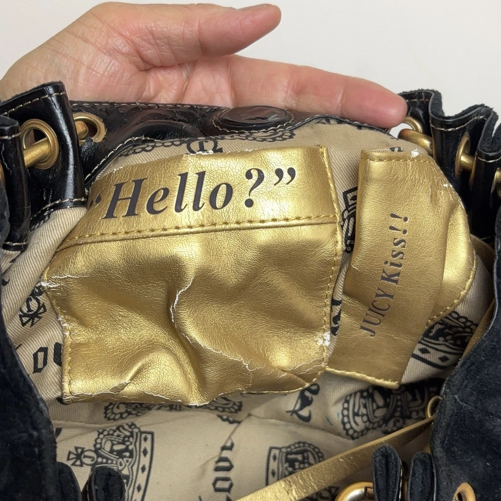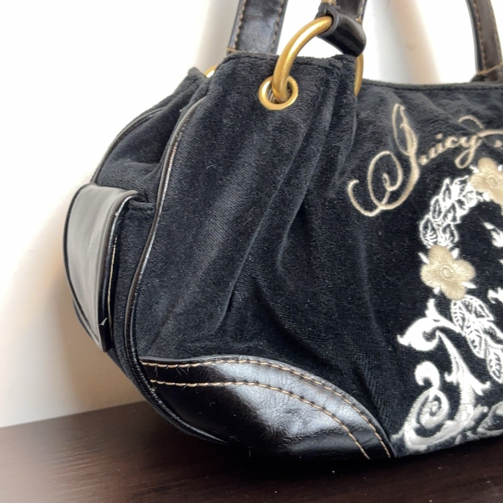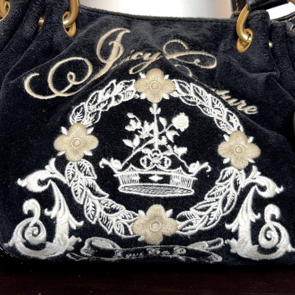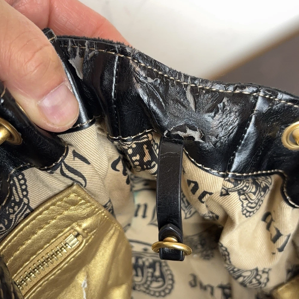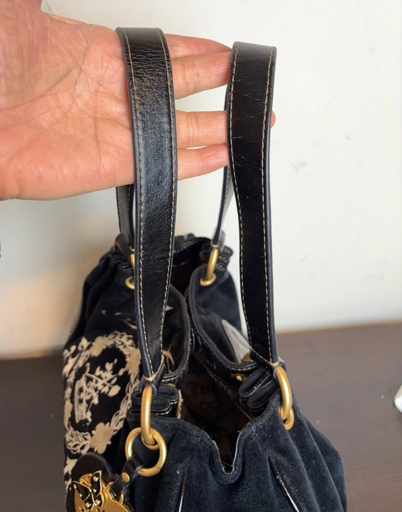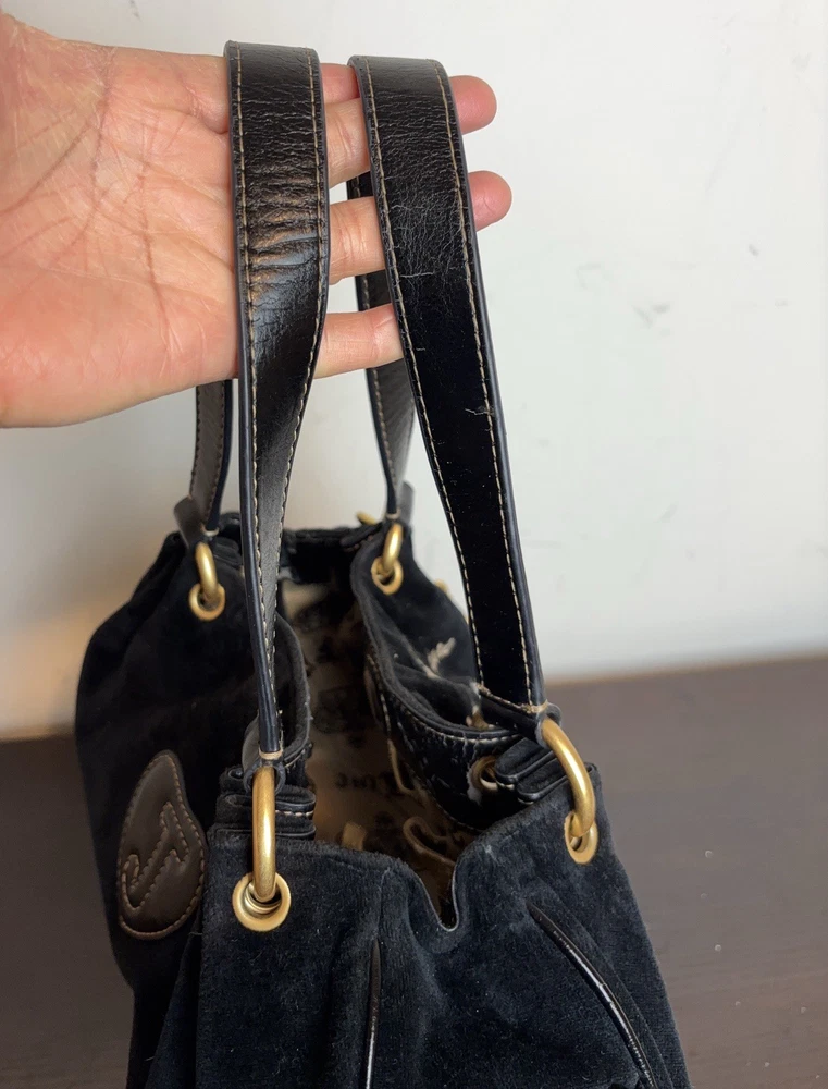 VTG Juicy Couture Daydreamer Bag Purse Tote Black Gold Charm Butterfly Heart Y2K Minor peel on one end and some peel on the black heart some inside on the ends see photos measures about 12x8x5 with handle drop of 8 inches has 2 end small outside pockets and inside are open and zip pockets there is gold butterfly charm with a black heart as backdrop couple gold tone key clips See photos Check out my store, 1000’s of vintage and collectibles items. Guarantee, Return, Shipping, and Tax Policies: We guarantee our products. We allow return or exchange. Unless STATED Otherwise Email us before sending it back to resolve any issues. Taxes for those US States that require them will be collected by eBay. International Buyers - please note: Import duties, taxes and charges are not included in the item price or shipping charges. Please check with your country's customs office before bidding/buying. Thank You!
