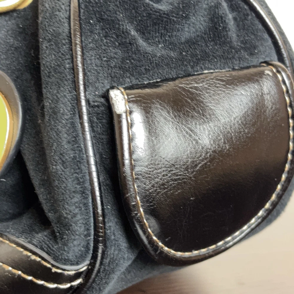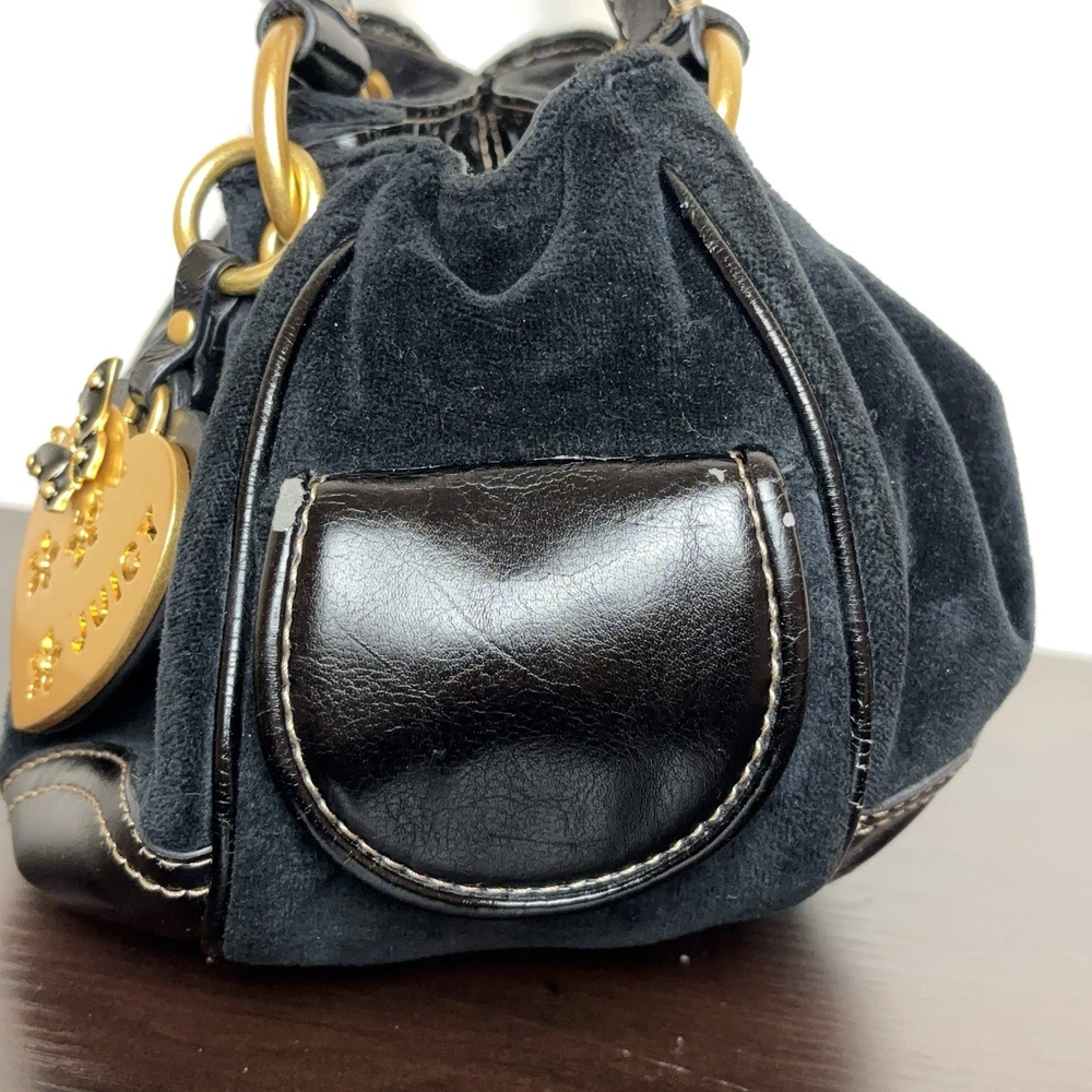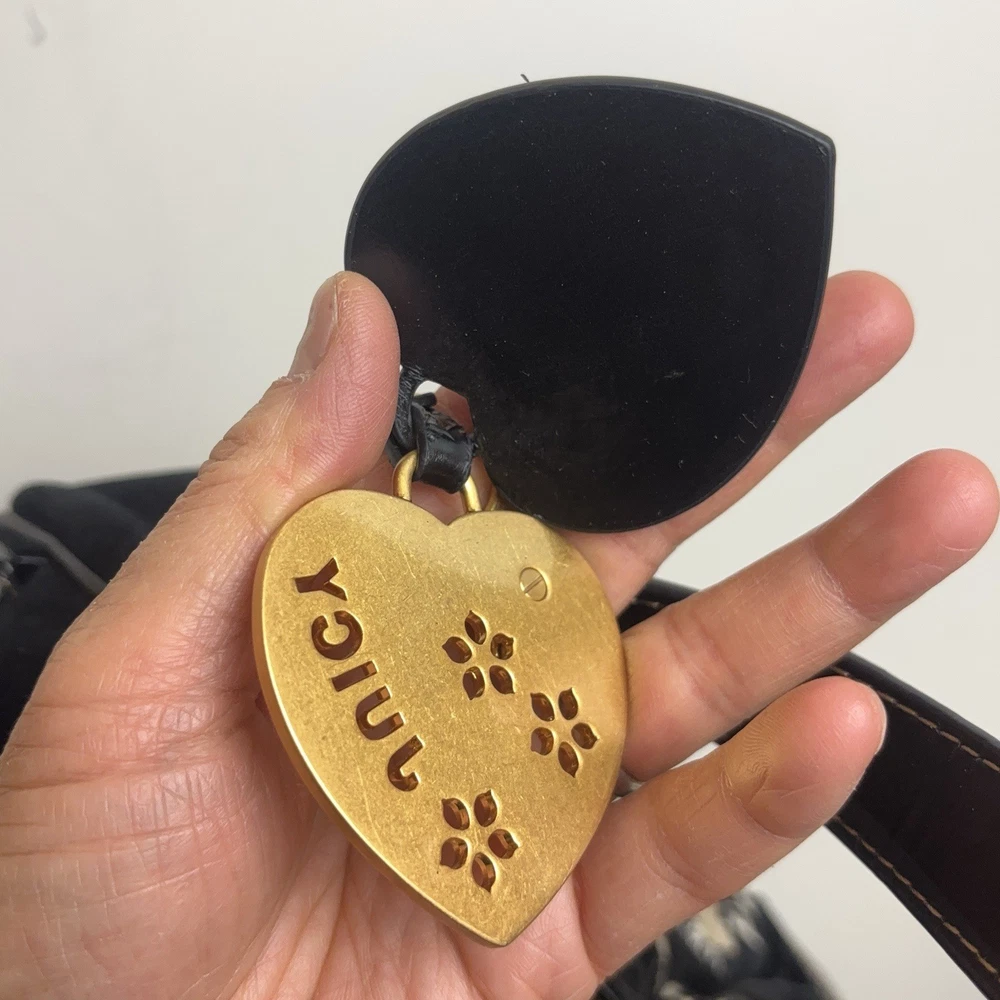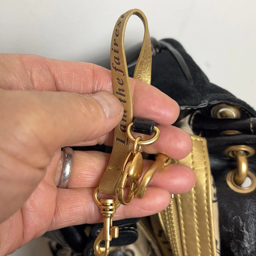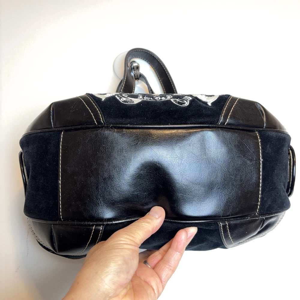 VTG Juicy Couture Daydreamer Bag Purse Tote Black Gold Charm Butterfly Heart Y2K Minor peel on one end and some peel on the black heart some inside on the ends see photos measures about 12x8x5 with handle drop of 8 inches has 2 end small outside pockets and inside are open and zip pockets there is gold butterfly charm with a black heart as backdrop couple gold tone key clips See photos Check out my store, 1000’s of vintage and collectibles items. Guarantee, Return, Shipping, and Tax Policies: We guarantee our products. We allow return or exchange. Unless STATED Otherwise Email us before sending it back to resolve any issues. Taxes for those US States that require them will be collected by eBay. International Buyers - please note: Import duties, taxes and charges are not included in the item price or shipping charges. Please check with your country's customs office before bidding/buying. Thank You!