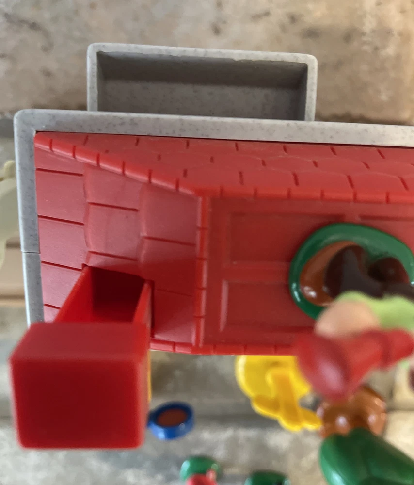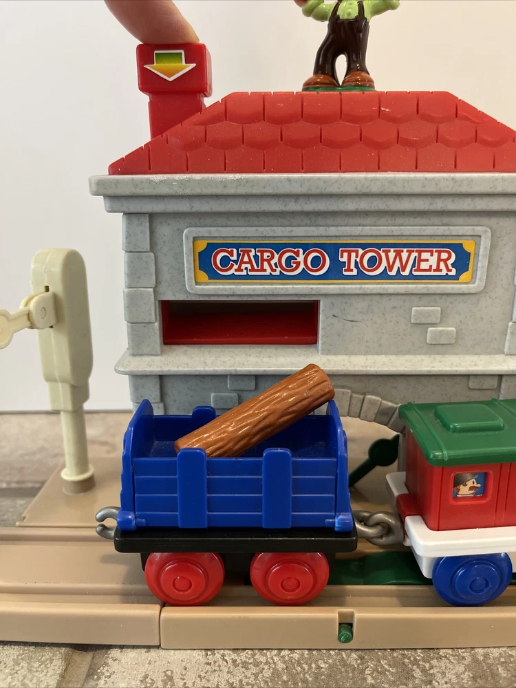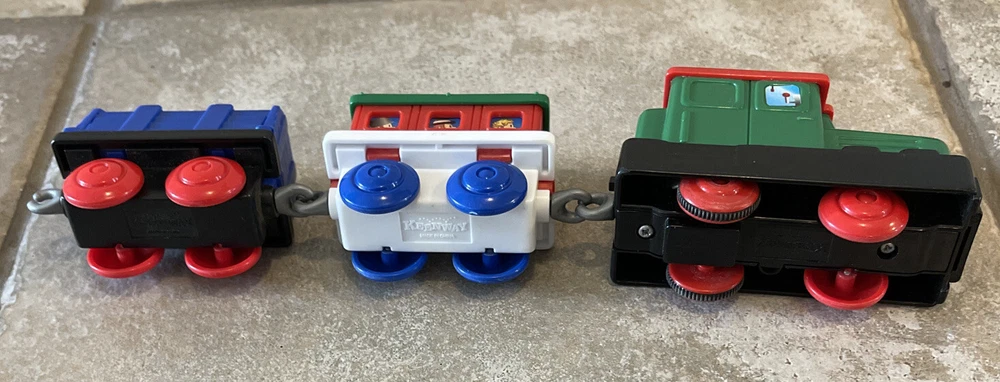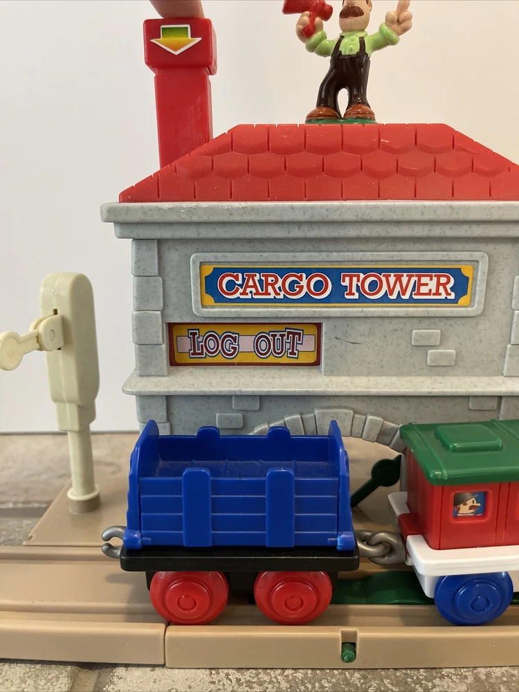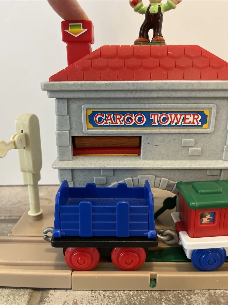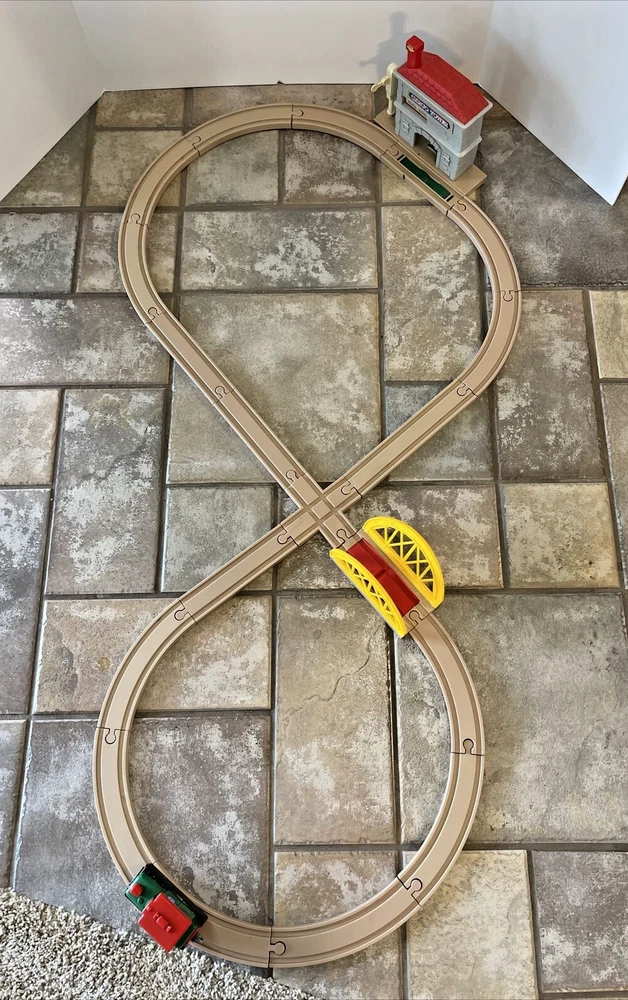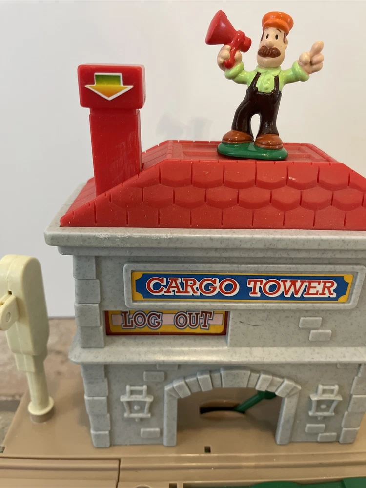 Vintage Keenway Plastic Train Track and People. Accessories included. Engine Works and pulls train! AA Battery included. Logs load in back of cargo tower and drop into train car when lever is pushed down. See last photo for alternate configuration using more track and pieces that are also included. Photos in this listing are helpful in set up. See Video in photos 37 pieces 19 pieces of track 1 cargo tower 5 people 1 engine and 2 train cars 1 red bridge with removable yellow sides. Train will only go one direction on this bridge. 4 signs 2 logs 1 tunnel 1 tree Please see photos for more details as they are considered part of the description. Smoke free home I ship quickly and am happy to combine shipping for multiple purchases. Add items to your cart and "request total", then I will send an invoice with combined shipping Questions are welcome and encouraged. Check out my ebay store for more great treasures!