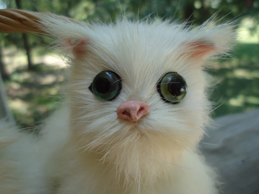 VTG Kittens Cats Wicker Basket Realistic Soft White Fur Glass Eyes Lifelike Mini