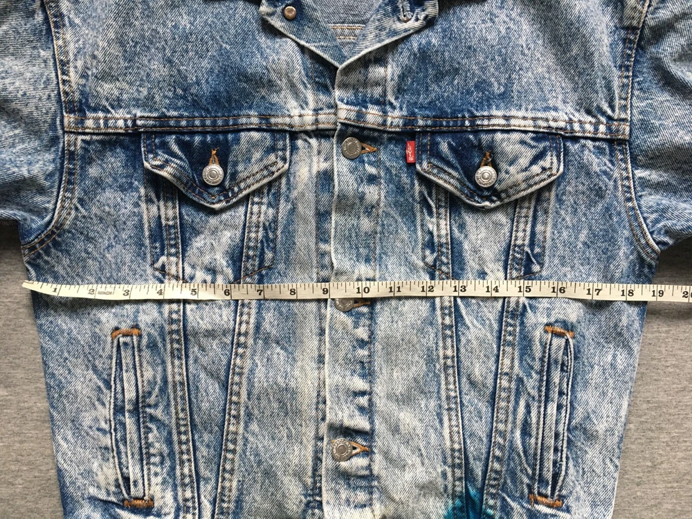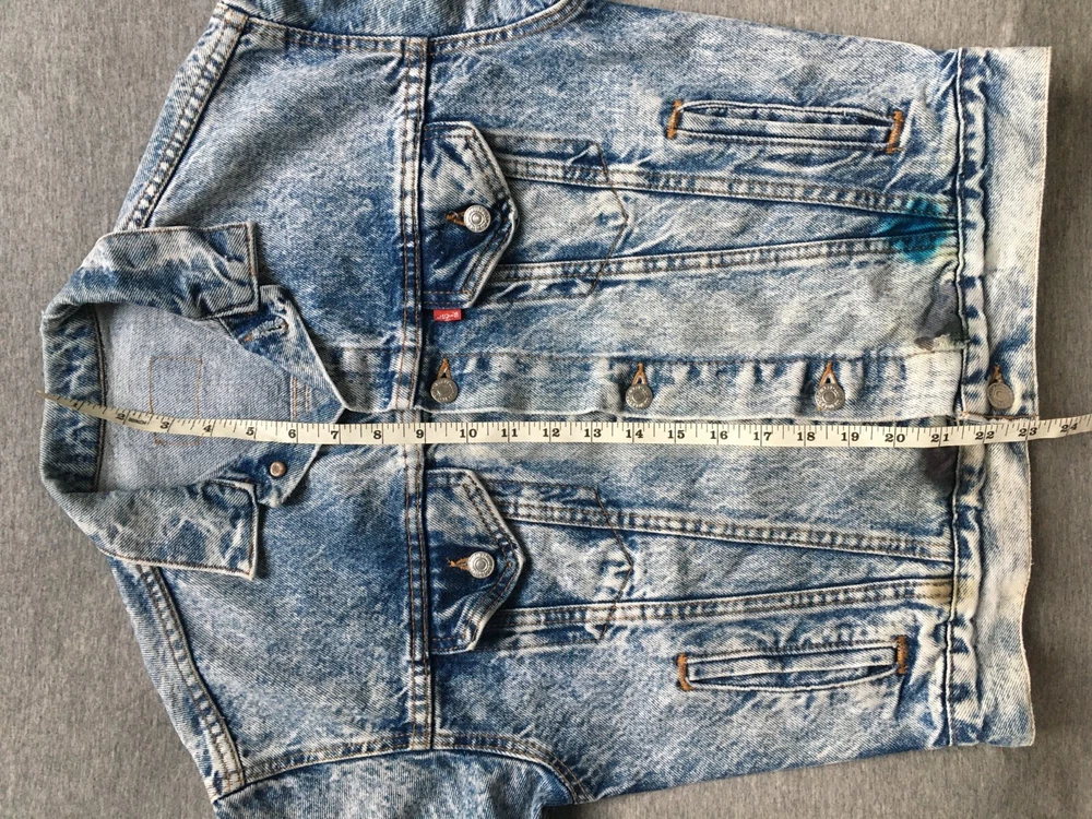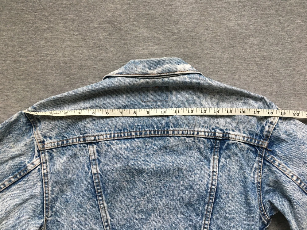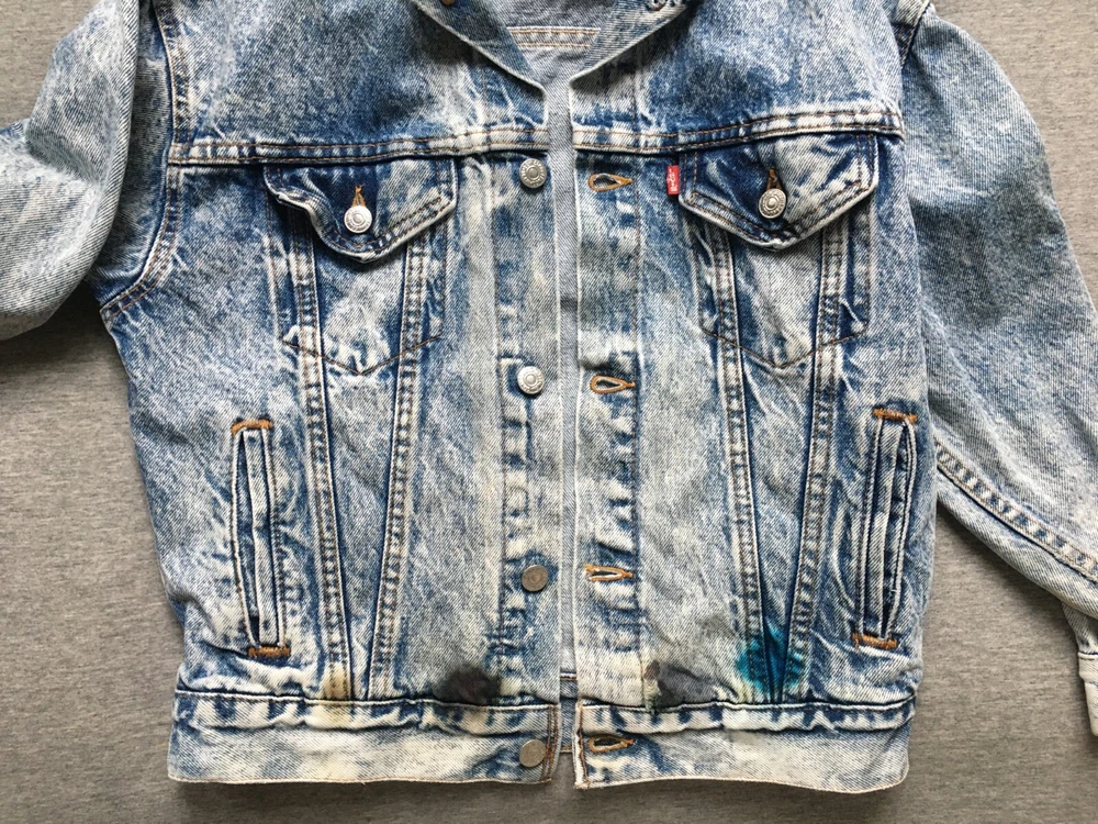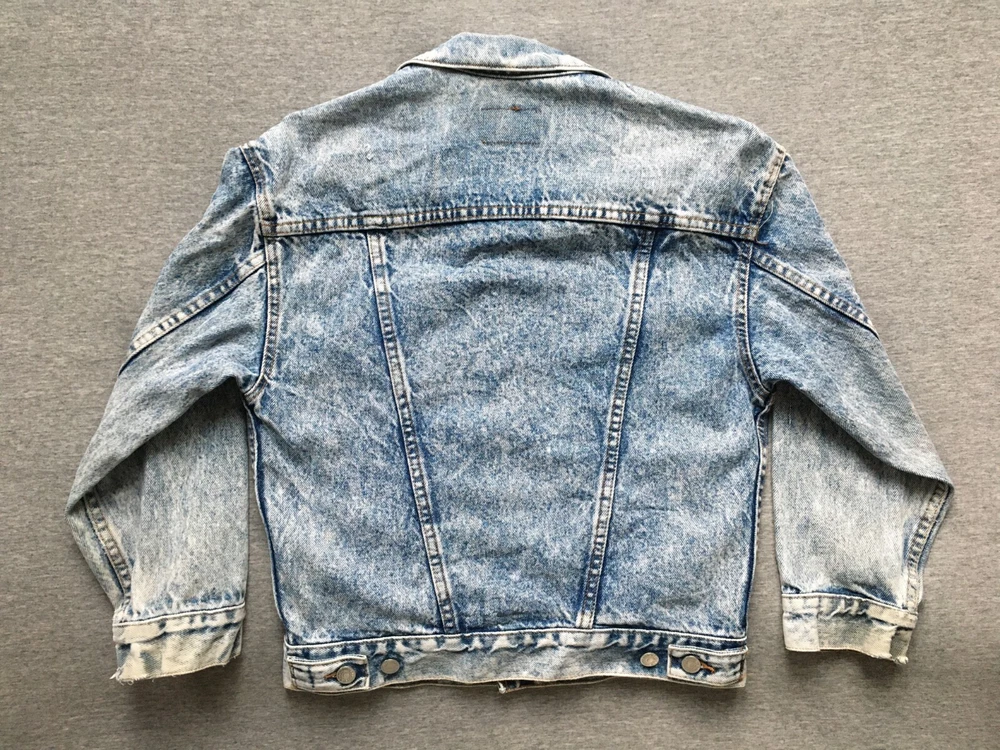 LEVI'S ACID WASH TRUCKER JACKET LEVI STRAUSS SIZE SMALL S DENIM MADE IN ??? Ultra-rare 80s Levis "Acid Wash" denim Trucker jacket in very good vintage condition. Likely from the mid-to-late 80s, but could be early 90s, hard to tell as no labelling inside. Definitely vintage, as is heavyweight denim, features the small e logo, and the wear to it is clearly not recent. Size is consistent with Small, but would be a bit shorter in the body, as was the style, back then. Cropped, I guess, but nothing drastic, see measurements. No major flaws anywhere, just a few light stains on the cuffs and backs of both sleeves, see close-ups. There are also some ink stains on the bottom of all the pockets on the fronts, also shown in detail. Some fraying on the cuffs, and one on the back upper left, but the denim is largely still thick, bar the sleeve area, which is also the most faded. Jacket is in exemplary condition for its age. May be a little creased as it's been in storage, but it is fresh having been washed recently. Great quality, all round. Photos a true representation of the jacket's condition. No angles obscured and all sides shown, so no surprises upon delivery. Great vintage piece, perfect for collectors. Be quick! Click here to view my other auctions. UK postage FREE , £15 to Europe (2-5 working days normally, Italy is GSP only), and £20 (5-10 working days usually, Australia can be double that) to the rest of the world—USA, Canada, Japan—all with signature and tracking. If these go to USA/outside continental Europe they will be marked low to avoid additional taxes/fees, etc. I will not send cheaper without tracking, so do not ask. If postage comes in cheaper for your location I will of course refund any difference. INTERNATIONAL BIDDERS: If you opt to use the Global Shipping Program it may take longer to arrive than I've quoted above. Please note: eBay takes 10% of shipping fees also, so please grade my shipping and packaging costs with that in mind. Many thanks for viewing and good luck.