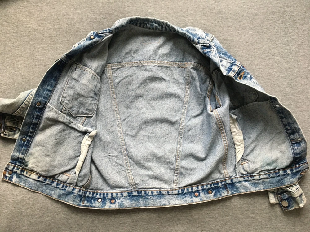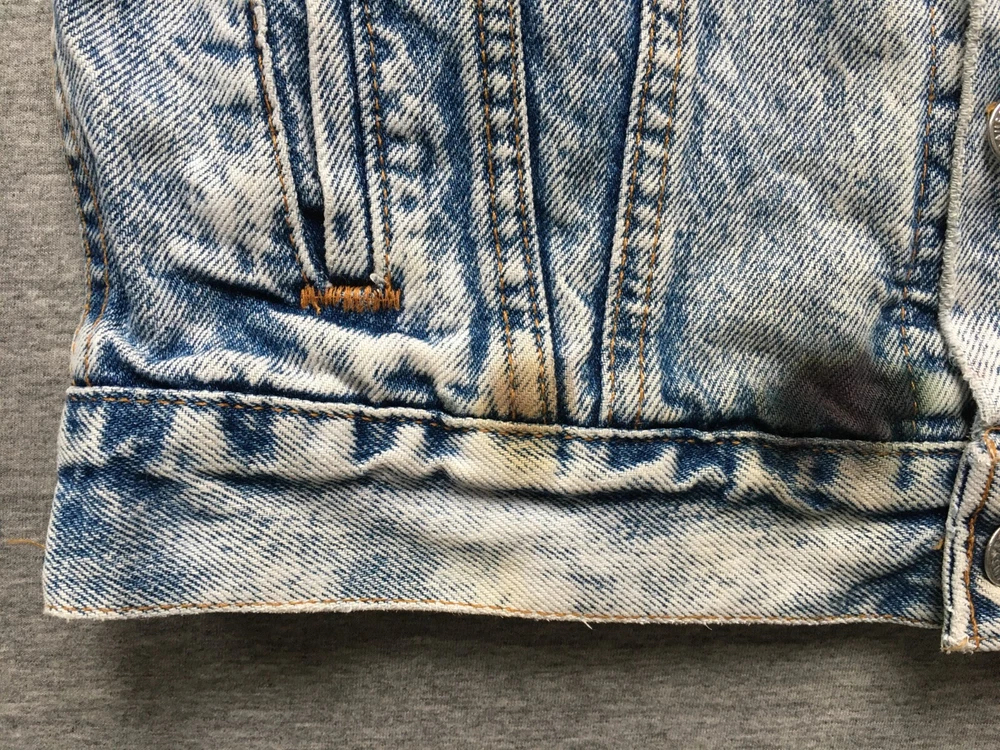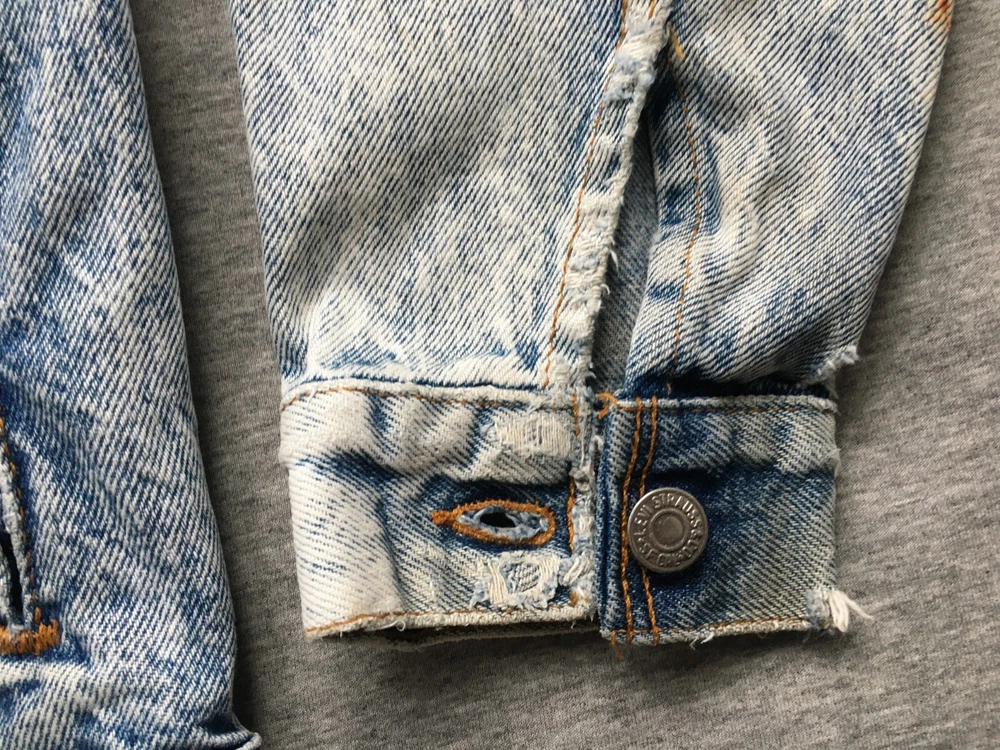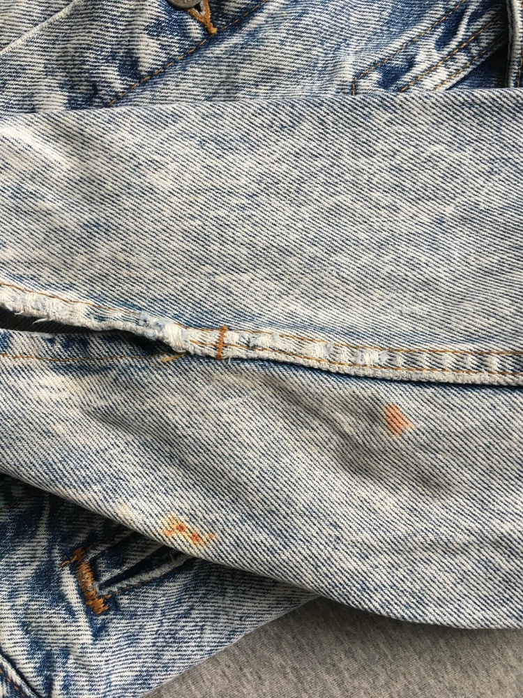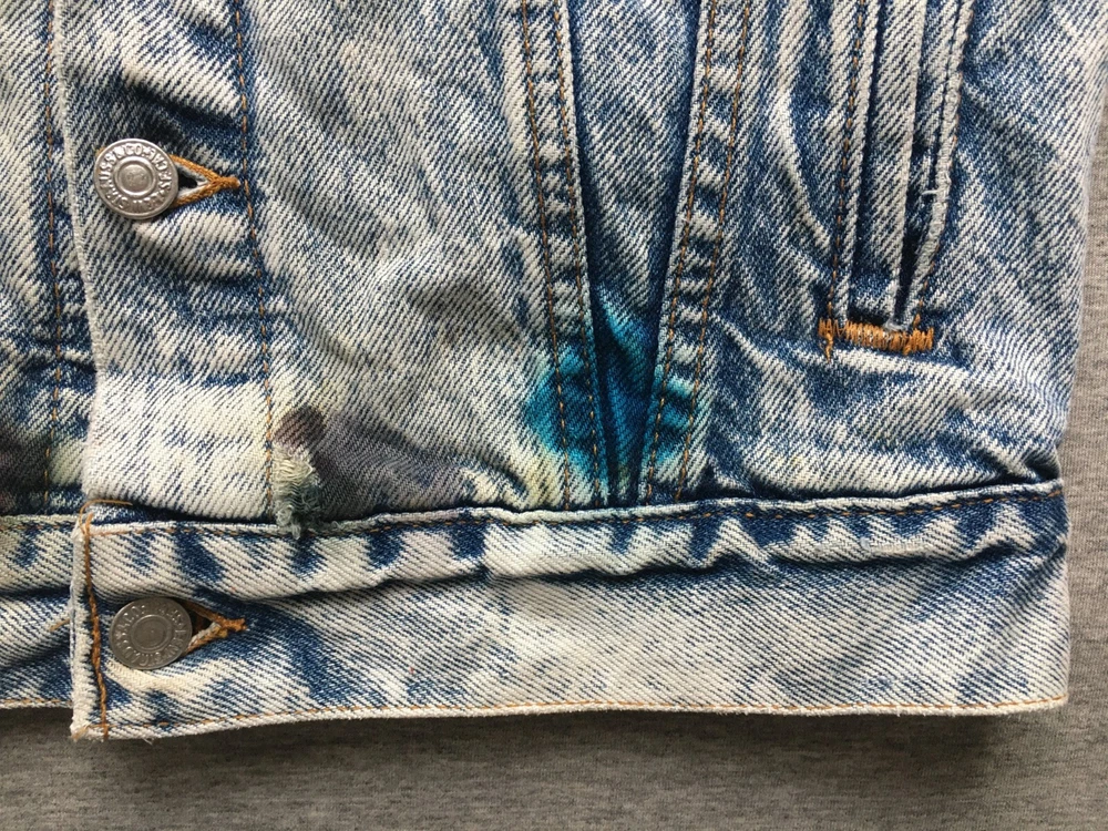 LEVI'S ACID WASH TRUCKER JACKET LEVI STRAUSS SIZE SMALL S DENIM MADE IN ??? Ultra-rare 80s Levis "Acid Wash" denim Trucker jacket in very good vintage condition. Likely from the mid-to-late 80s, but could be early 90s, hard to tell as no labelling inside. Definitely vintage, as is heavyweight denim, features the small e logo, and the wear to it is clearly not recent. Size is consistent with Small, but would be a bit shorter in the body, as was the style, back then. Cropped, I guess, but nothing drastic, see measurements. No major flaws anywhere, just a few light stains on the cuffs and backs of both sleeves, see close-ups. There are also some ink stains on the bottom of all the pockets on the fronts, also shown in detail. Some fraying on the cuffs, and one on the back upper left, but the denim is largely still thick, bar the sleeve area, which is also the most faded. Jacket is in exemplary condition for its age. May be a little creased as it's been in storage, but it is fresh having been washed recently. Great quality, all round. Photos a true representation of the jacket's condition. No angles obscured and all sides shown, so no surprises upon delivery. Great vintage piece, perfect for collectors. Be quick! Click here to view my other auctions. UK postage FREE , £15 to Europe (2-5 working days normally, Italy is GSP only), and £20 (5-10 working days usually, Australia can be double that) to the rest of the world—USA, Canada, Japan—all with signature and tracking. If these go to USA/outside continental Europe they will be marked low to avoid additional taxes/fees, etc. I will not send cheaper without tracking, so do not ask. If postage comes in cheaper for your location I will of course refund any difference. INTERNATIONAL BIDDERS: If you opt to use the Global Shipping Program it may take longer to arrive than I've quoted above. Please note: eBay takes 10% of shipping fees also, so please grade my shipping and packaging costs with that in mind. Many thanks for viewing and good luck.