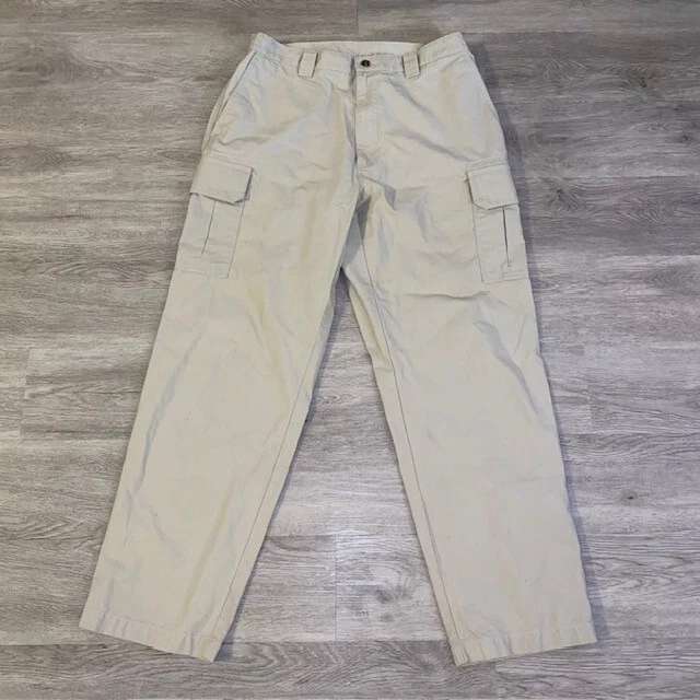 Pattern: Solid Seller Notes: “No rips/tears/holes. One small paint stain on back. See photos.” Features: Comfort, Easy Care, Lightweight, Pockets Type: Pants Waist Size: 32 in Vintage: Yes Style: Cargo Rise: Mid (10-12 in) Color: Beige Accents: Button, Zipper Suspender Buttons/Belt Loops: Belt Loops Country/Region of Manufacture: Colombia Theme: American, Classic, Designer, Outdoor Fit: Regular Inseam: 30 in Size: 34 Season: Fall, Spring, Summer, Winter Size Type: Regular Department: Men Handmade: No Pocket Type: Cargo Pocket Material: Cotton Closure: Button Brand: L.L. Bean Front Type: Flat Front Personalize: No Fabric Type: Canvas Occasion: Casual Leg Style: Straight