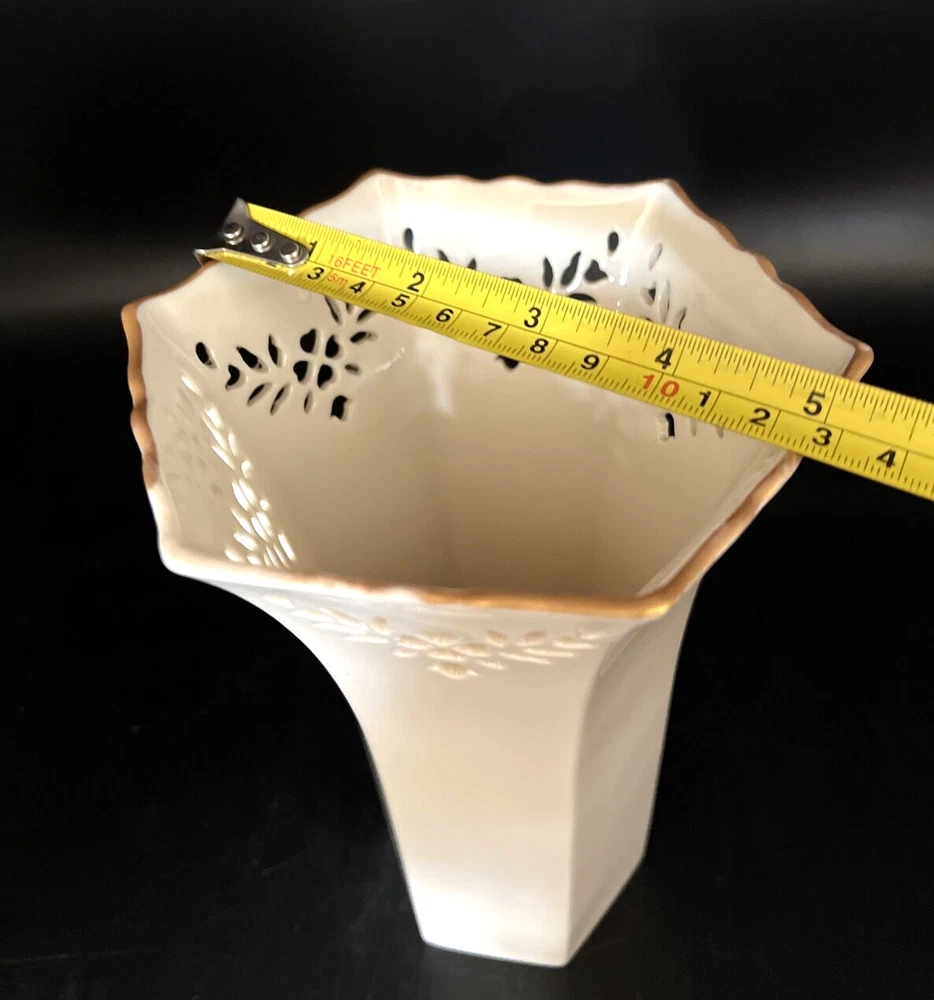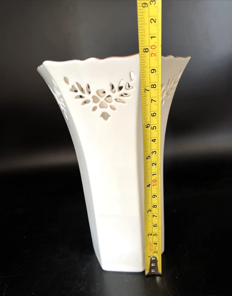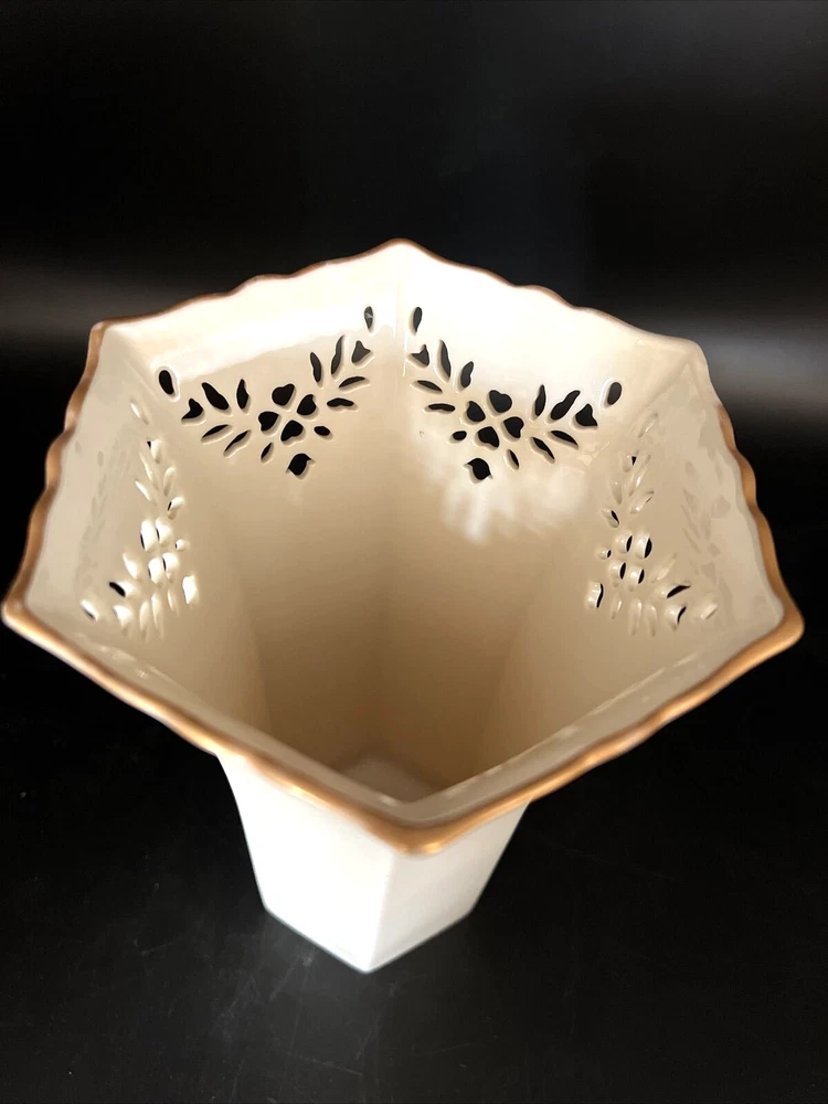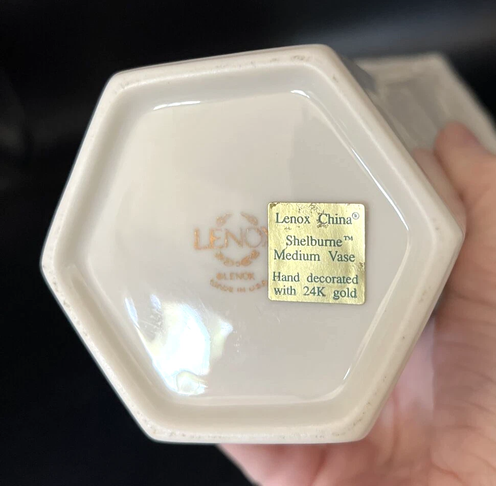 VTG Lenox China Shelburne Design 8" Vase Hand Decorated 24K Gold Trimmed There is a small amount of gold wear on the rim , may have come from the manufacture that way . I will pack with care and get it to you ASAP Thanks for looking
