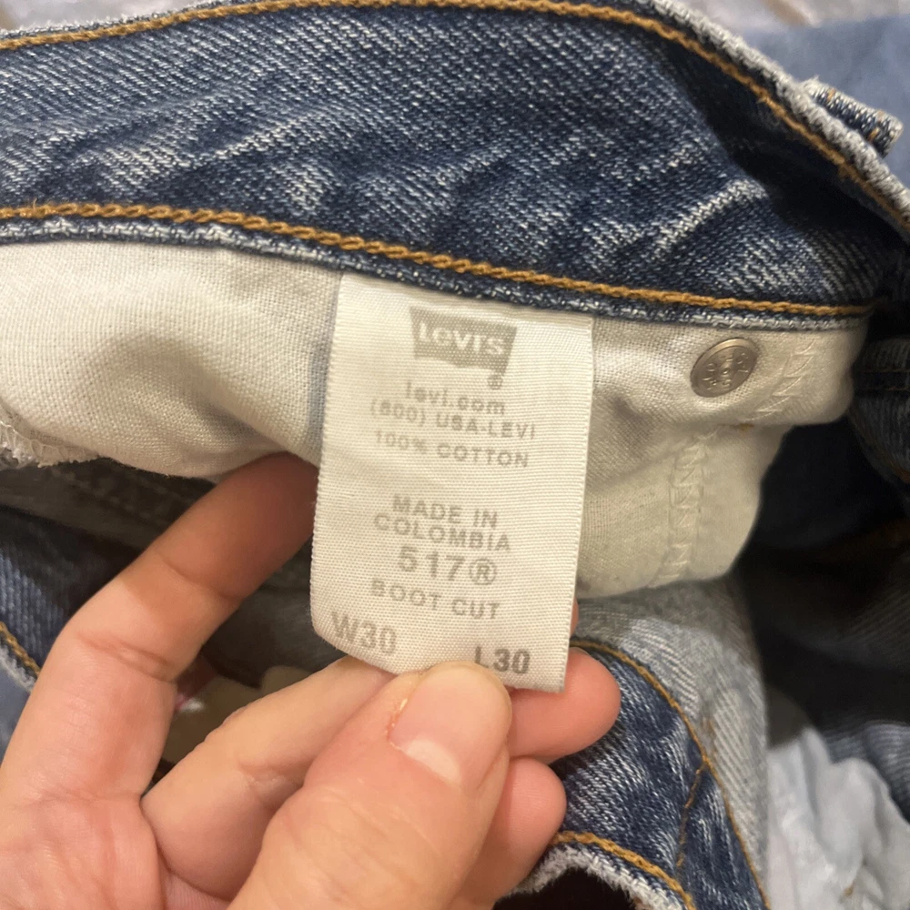 VTG Levis 517 Jeans Men 30x30*28x28* Bootcut Pants Light Wash Y2K Faded Whiskers Lay flat measurements Waist- 28 in Rise- 10.5 in Inseam-28 in 100% cotton **In good pre owned condition. Some distressing in the inner thigh area. Please see photos** Comes from a smoke free home