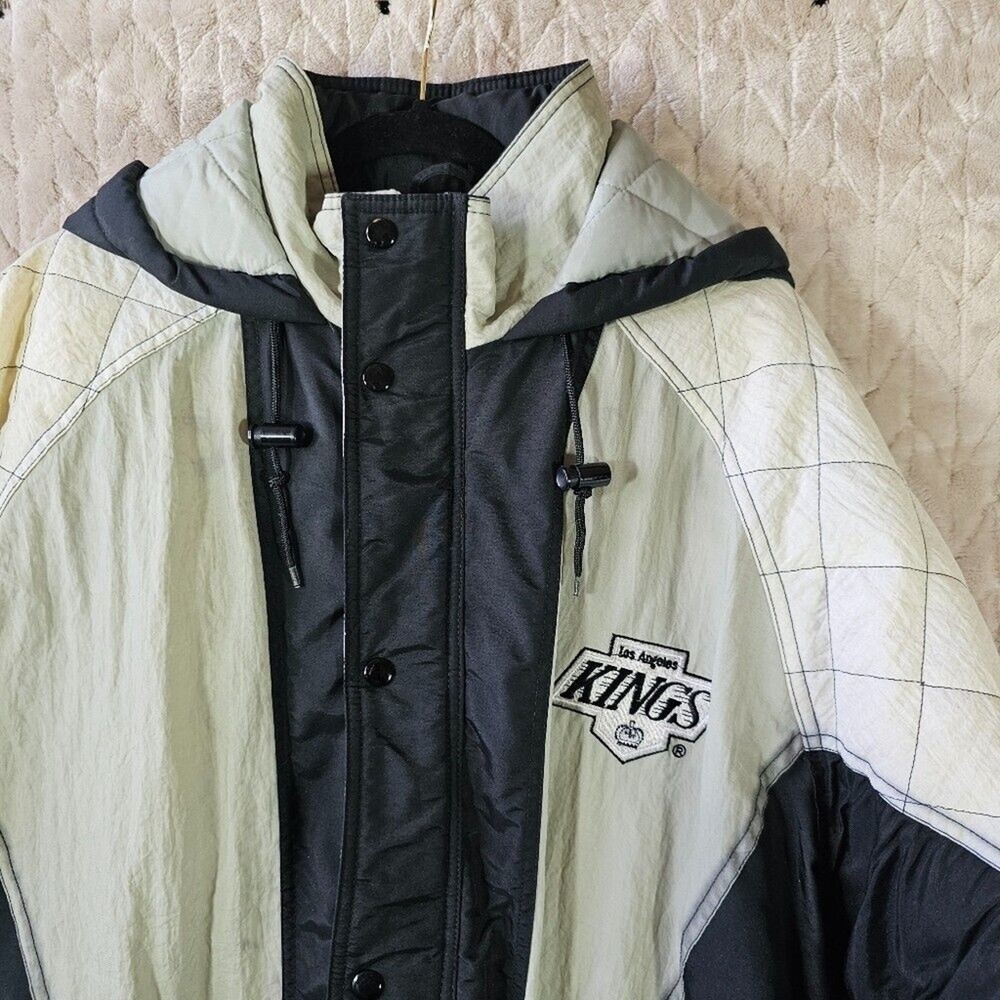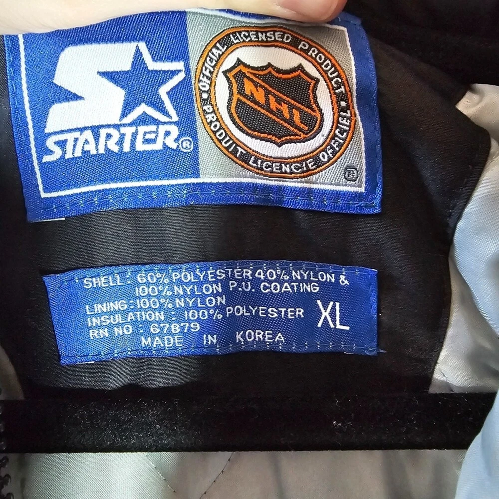 Rare starter jacket, I haven't been able to find another one. In good pre owned condition, has some bleeding between the white and black as shown in photos.