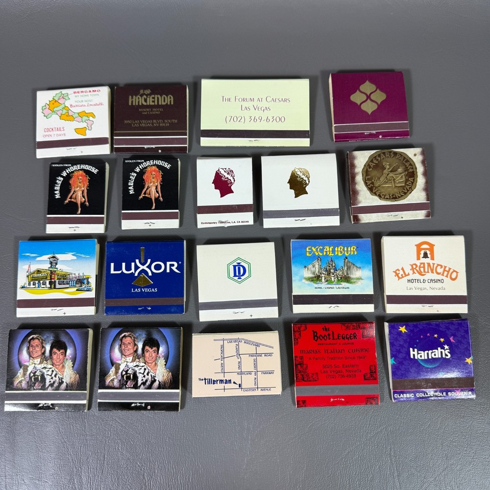 VTG Lot of 19 Matchbooks Unstruck Nevada Las Vegas The Strip Casinos Bars *READ Condition varies on each individual matchbox. 90-95% are unused and unstruck. The other 5-10% that have been struck its only 1 or 2 matches. None of the books are empty. This sale is for the exact items you see in the photo. . There maybe some duplicates in this lot. I will be listing more Vintage Collectible Unstruck Matchbooks over the next day or so. • P lease see all pictures for details on condition. • Pictures are part of the description. • You will receive the exact items you see in the photos, no original packaging included. • Please ask any questions you have. • We offer combined shipping for multiple orders. • Ships quickly Monday-Friday with USPS