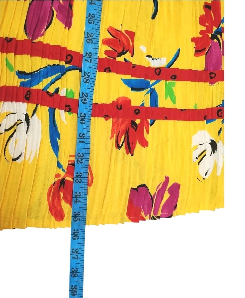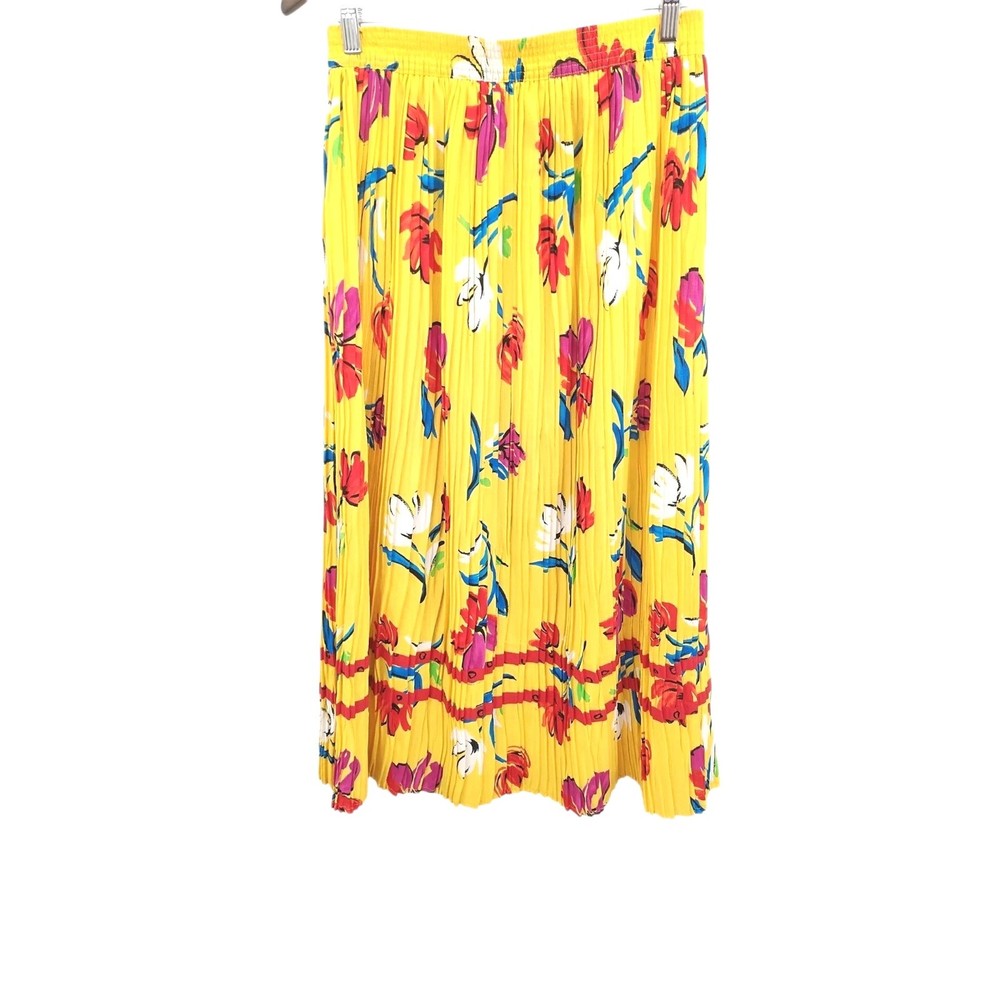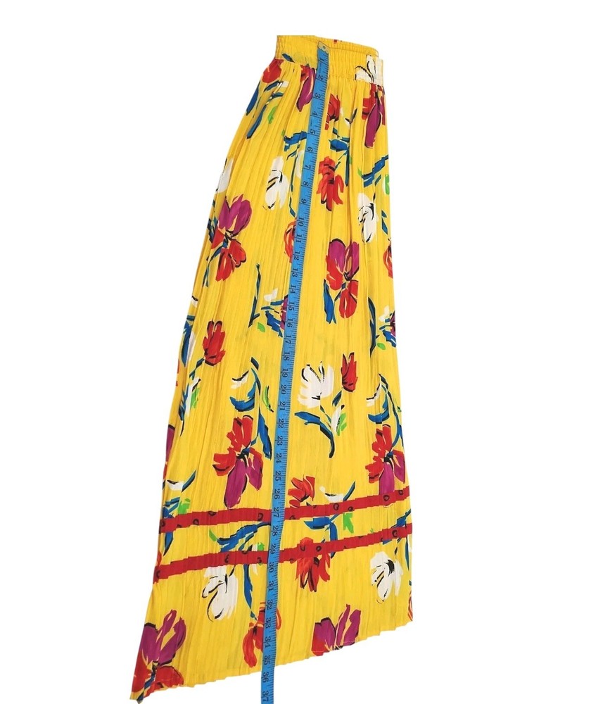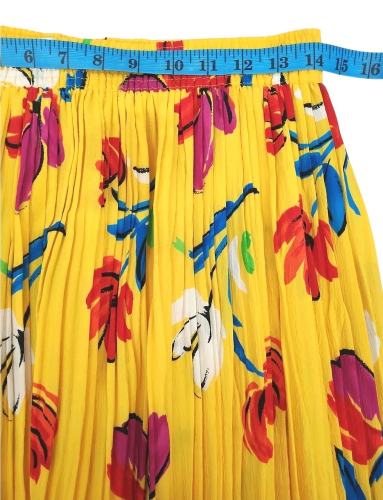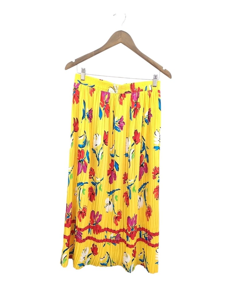 Vintage Retro 80' 90' Lucia Women skirt Elastic Waist pleated stretch Hawaiian Vacation Tropical Yellow Summer Floral Size Medium Preowned Excellent condition