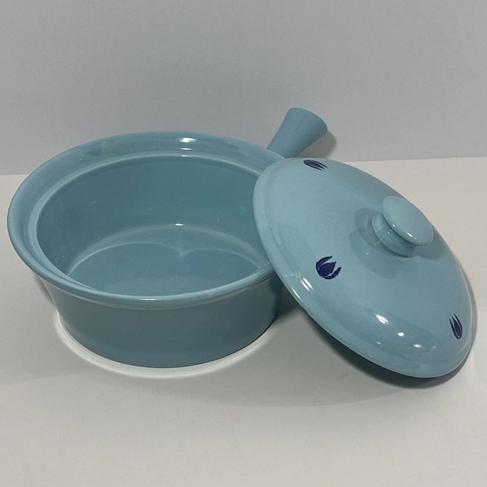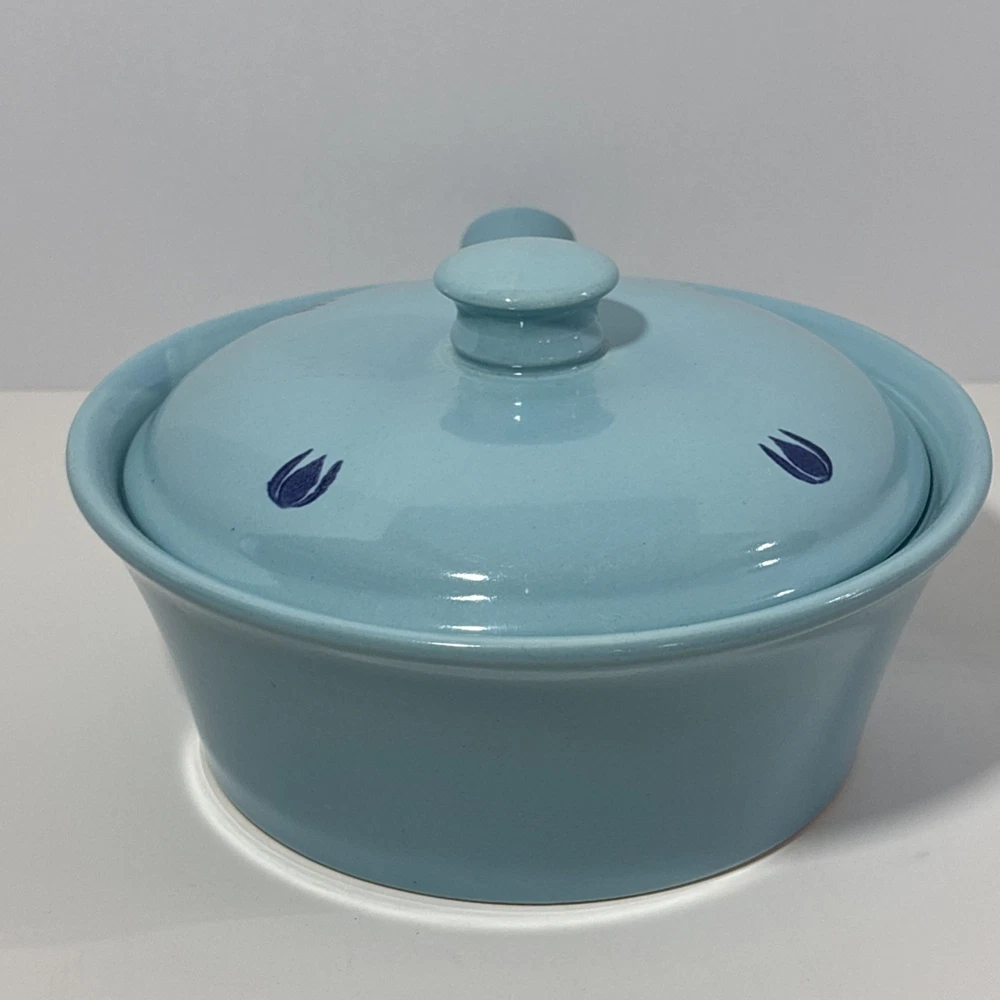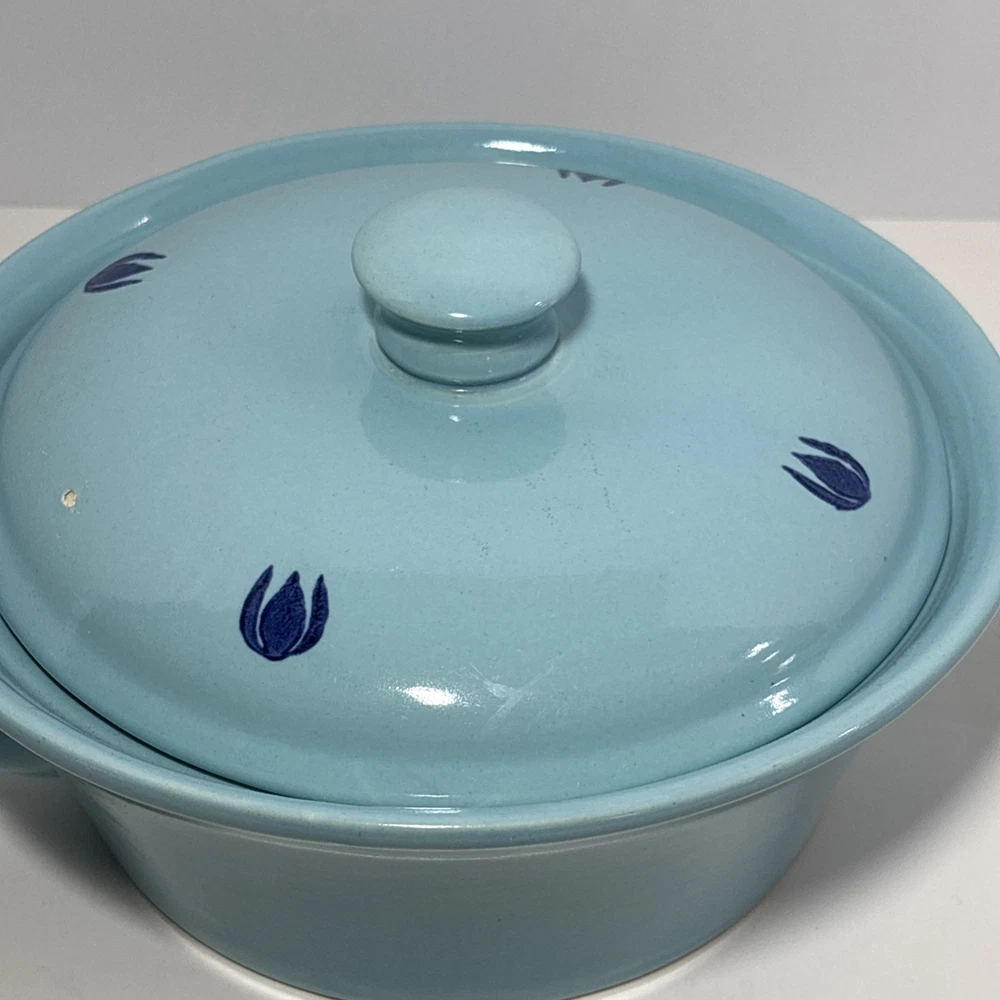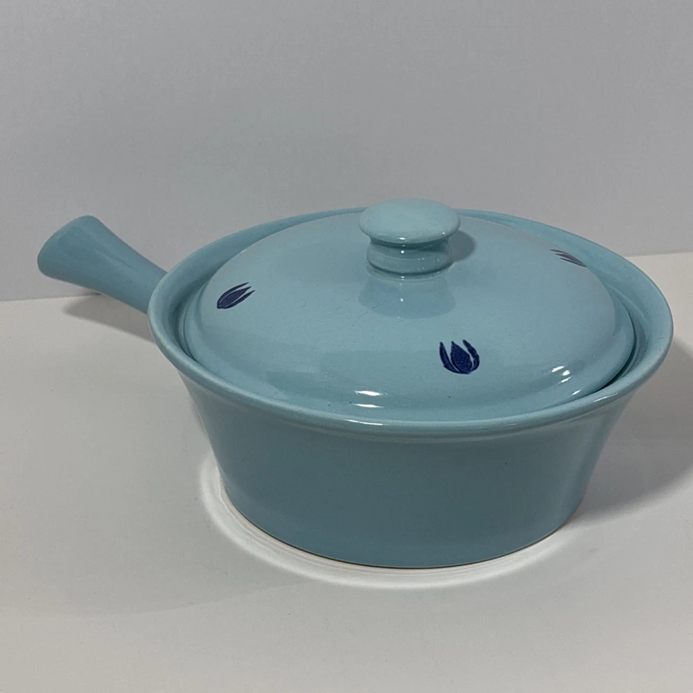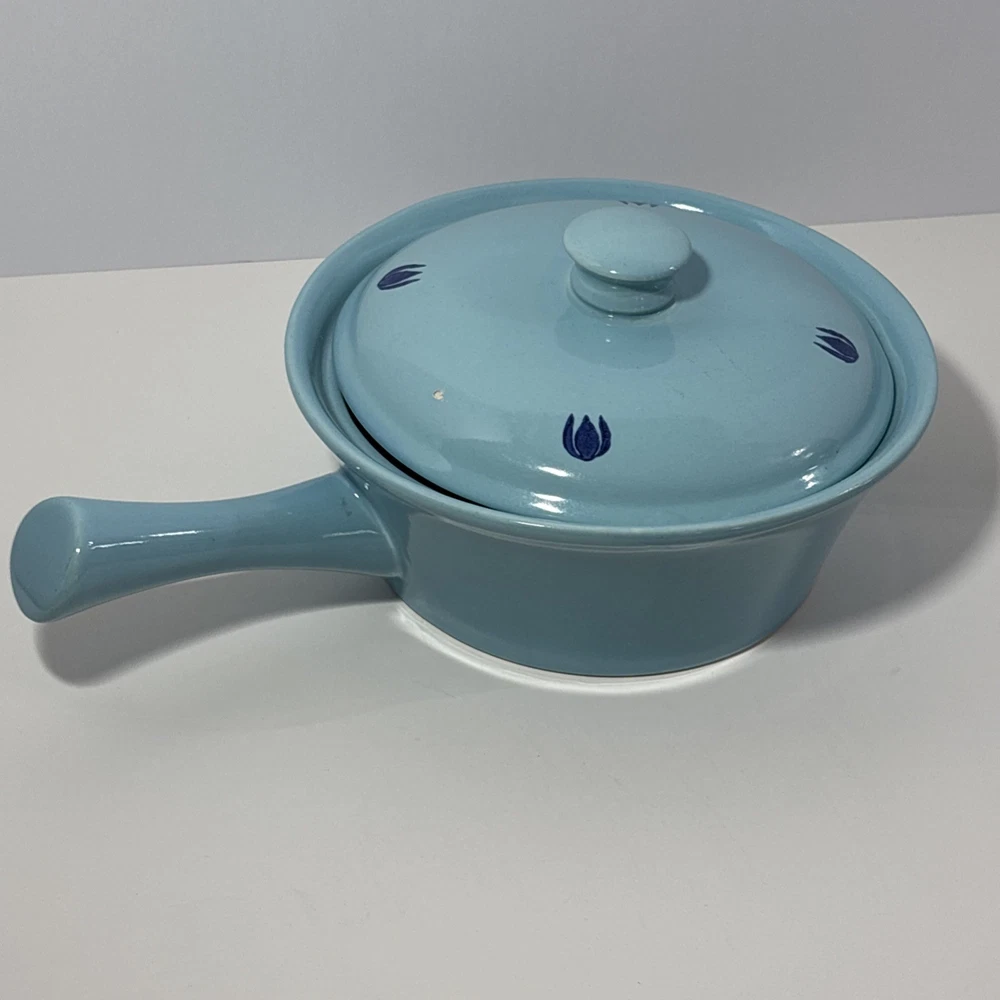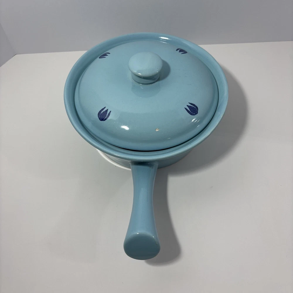 VTG ✅ MCM Pottery Blue W/Tulip Pattern Bean Pot W/handle & Spout Made In USA ✅ Used Condition! *Has a small chip out of the lid on top…clearly seen in photos. ✅ Look at all photos to see the condition of the item. Please feel free to ask any questions you may have. ✅ Ready to ship!