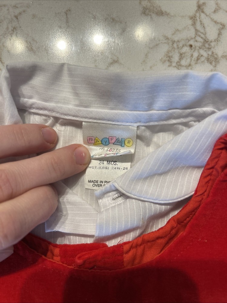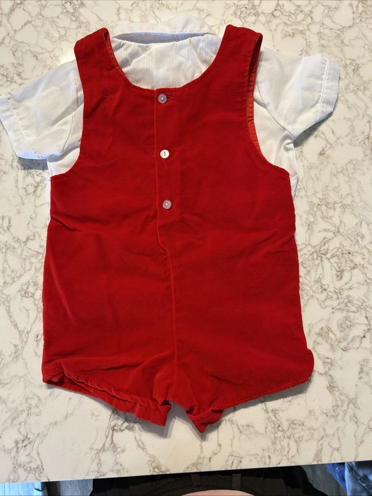 Set Includes: Dress Shirt Garment Care: Machine Washable Sleeve Length: Sleeveless Character Family: trains Personalize: No Occasion: Casual, Formal, Party Brand: Mayfair Size: 18-24 Months Closure: Snap Number of Pieces: 2 Piece Color: Red Fabric Type: cotton Theme: Christmas Pattern: Solid Season: Winter Department: Boys Accents: Embroidered Performance/Activity: Walking Handmade: No Vintage: Yes Character: Boy Country of Origin: United States Style: Overall Material: 100% Cotton Type: One-Piece