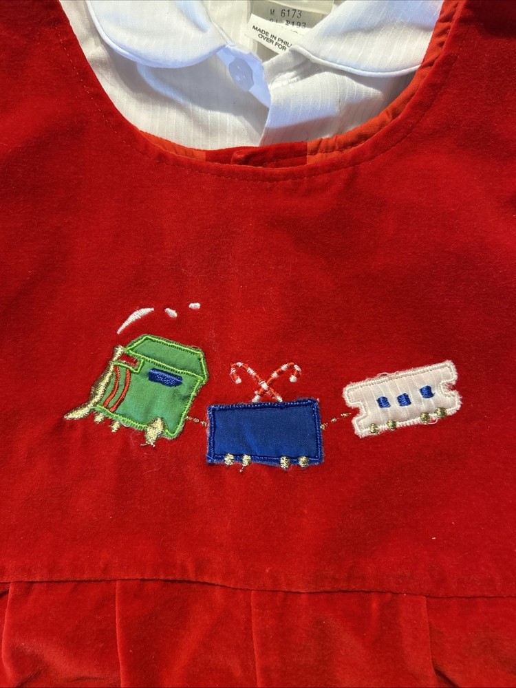 VTG Mayfair 90’s Christmas Red Overalls 24 Months Boys Girls embroidered Trains