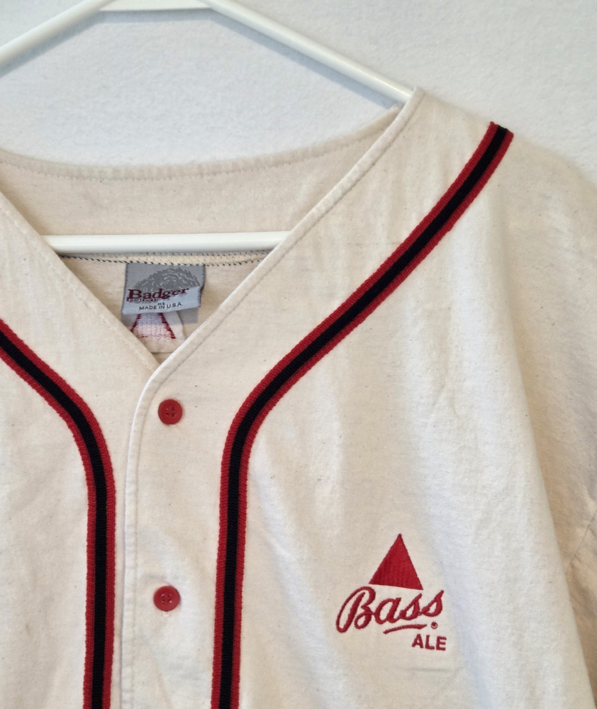 VTG Men's Badger Baseball Jersey Bass Ale Party Drinking Shirt USA MADE SZ XL Please see pictures for measurements. Thanks for looking!