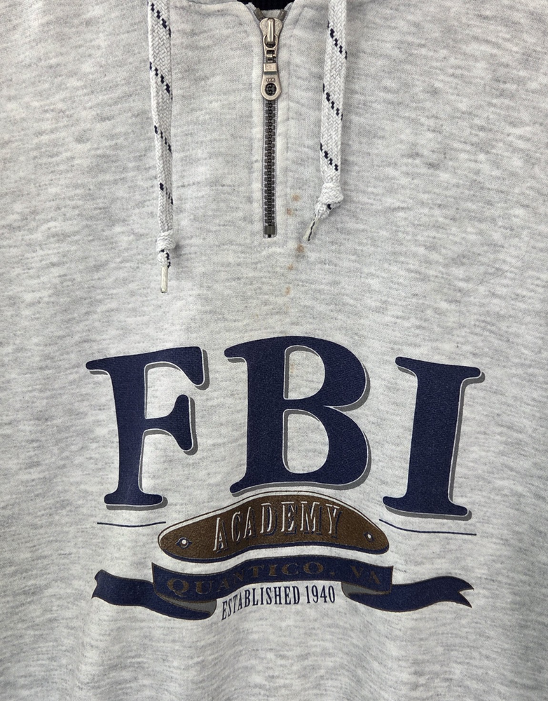 VTG Men's FBI Academy Hoodie Sweatshirt Men’s L Large 90s Graphic Pullover Gray Small stain on the front. Please see pictures. Item has been washed, but not oxicleaned. Please see pictures for measurements. Thanks for looking!