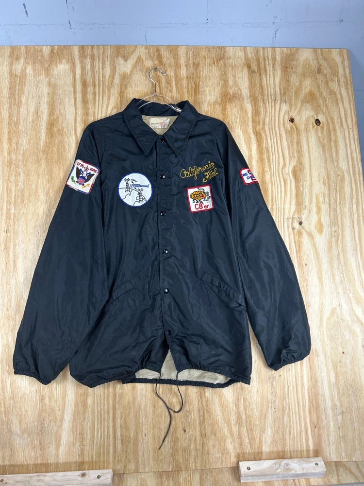 VTG Mens King Louie Pro Fit Jacket w/Patches Snap Windbreaker Nylon Size Large