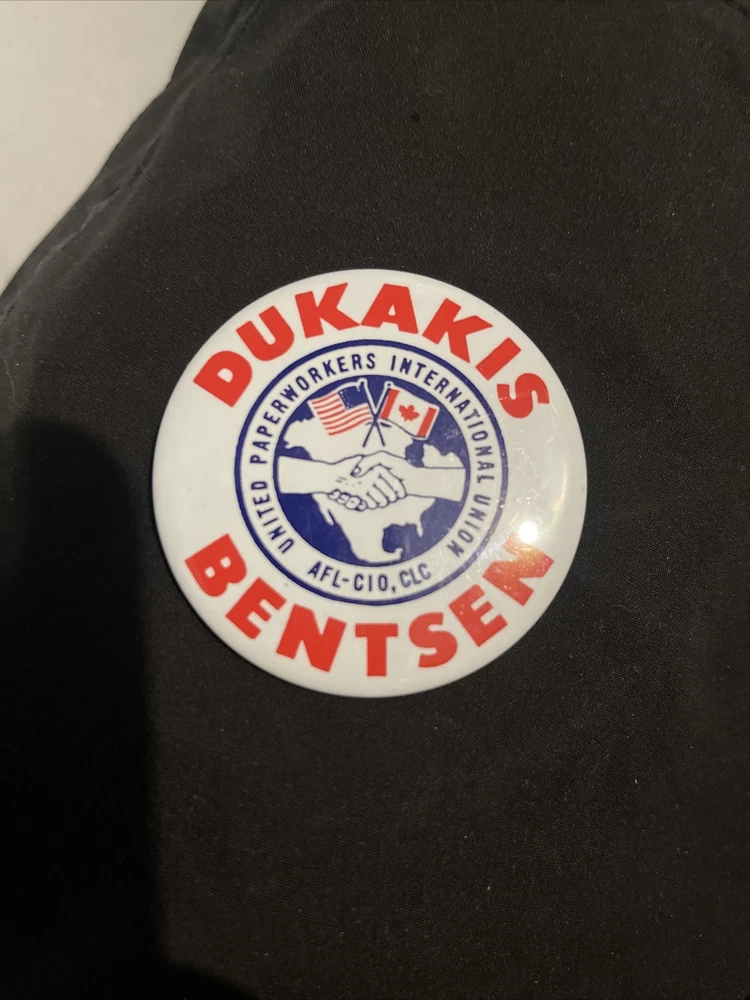 This vintage Michael Dukakis Presidential Buttons collection is a must-have for any political enthusiast. The buttons, made in the United States, feature the former Massachusetts Governor's name and his 1988 presidential campaign theme. The buttons are a great addition to any collection of historical memorabilia and are perfect for display or wearing on a jacket or backpack. The buttons are in excellent shape and have not been modified in any way. They were made during a time when political buttons were very popular and are a great representation of the 1988 Presidential Election. This item is a true gem for collectors and enthusiasts alike.