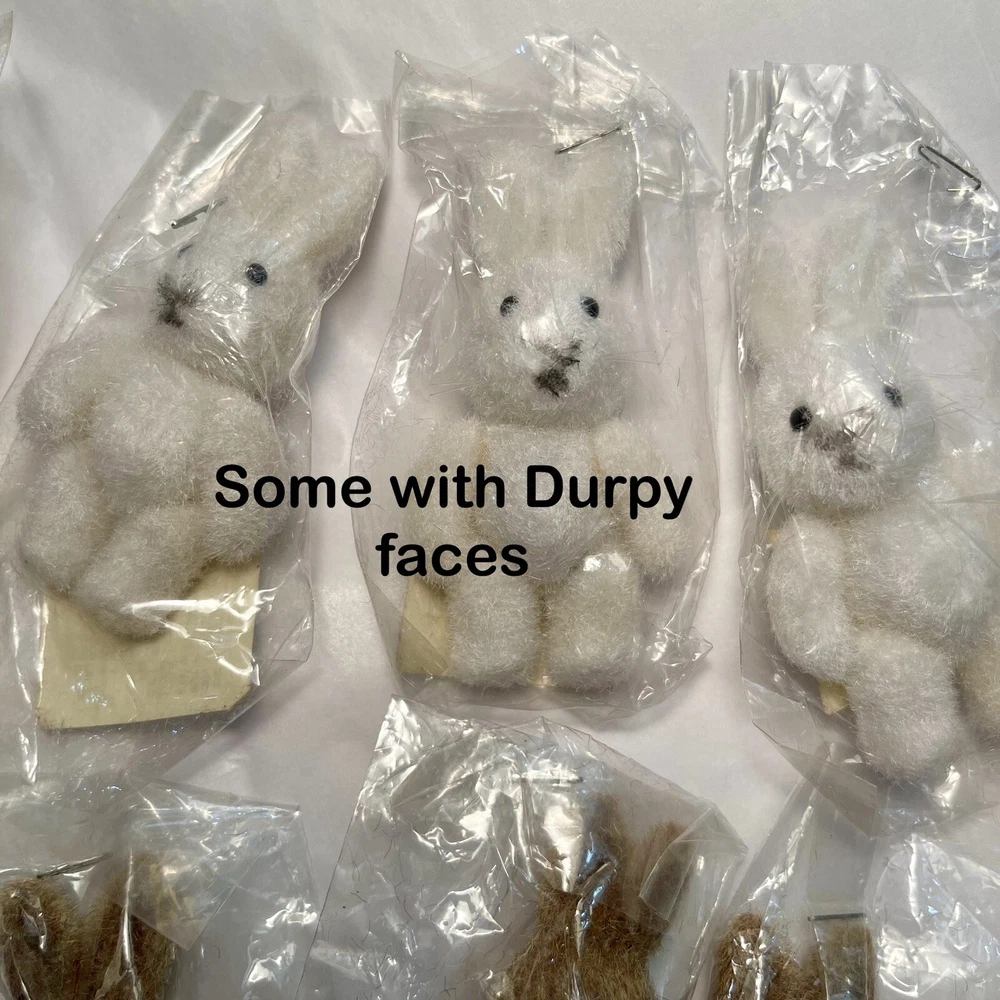 VTG NOS Lot of 11 Flocked Easter Bunny Rabbit Figures Articulated Collectible Add these adorable flocked bunnies to your collection of Easter-themed figurines. These small brown and white rabbits stands at 2.75 inches tall and have movable parts. Please handle with care since they are vintage and fragile with age. The flocked material gives them a cute and soft appearance, making them a perfect addition to any collection of fantasy or wildlife-themed figurines. Or, make them part of your decorative displays or cute Easter gift surprises. These bunny rabbits are collectible and perfect for Easter, art, crafts, fairy tale themed projects, or for wildlife enthusiasts. Its small size makes it easy to display on any shelf or desk. Get your hands on this vintage new old stock lot of 11 articulated bunny figures before they disappear! They come in their original packaging. The one sample shown out of package is one I kept.