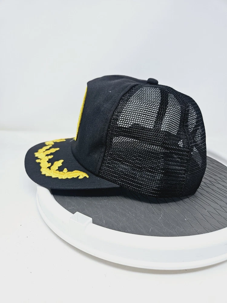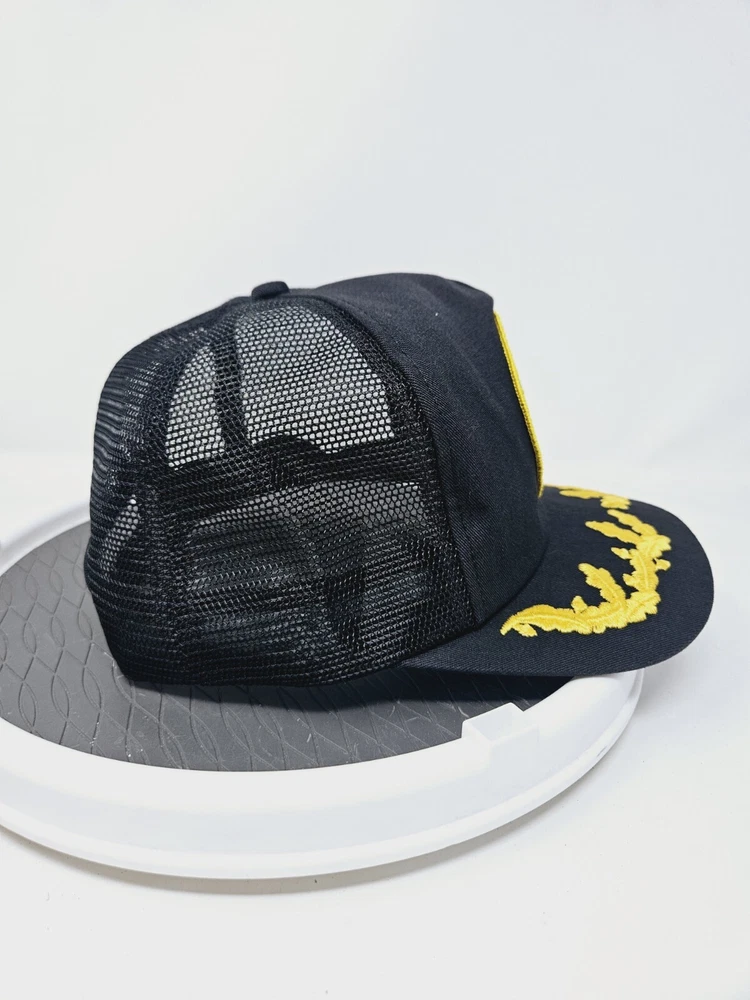 Season: Fall, Spring, Summer, Winter Style: Trucker Hat Brand: K-Products Fabric Type: Mesh Size: One Size Fits Most Country/Region of Manufacture: United States Pattern: Solid Theme: 80s, 90s, Classic, Retro, Vintage Features: Adjustable, Breathable, Lightweight, Mesh Back Color: Black Signed: No Personalize: No Department: Men Handmade: No Material: Foam Occasion: Casual, Party/Cocktail, Travel Vintage: Yes Character: Rifle