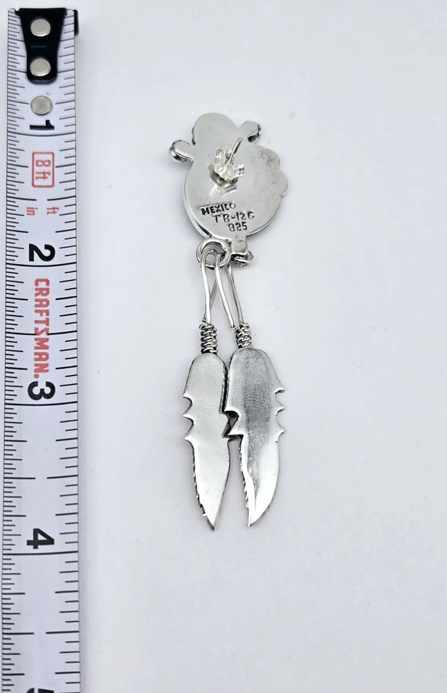Tribal Affiliation:NavajoMaterial:FeatherMetal Purity:925Theme:Ethnic, WesternVintage:YesMain Stone:TurquoiseAntique:YesCountry/Region of Manufacture:MexicoCountry of Origin:United StatesBrand:TaxcoNumber of Gemstones:1Metal:Sterling SilverEthnic & Regional Style:TaxcoColor:SilverHandmade:YesType:EarringsSigned:YesMain Stone Color:BlackStyle:Earrings