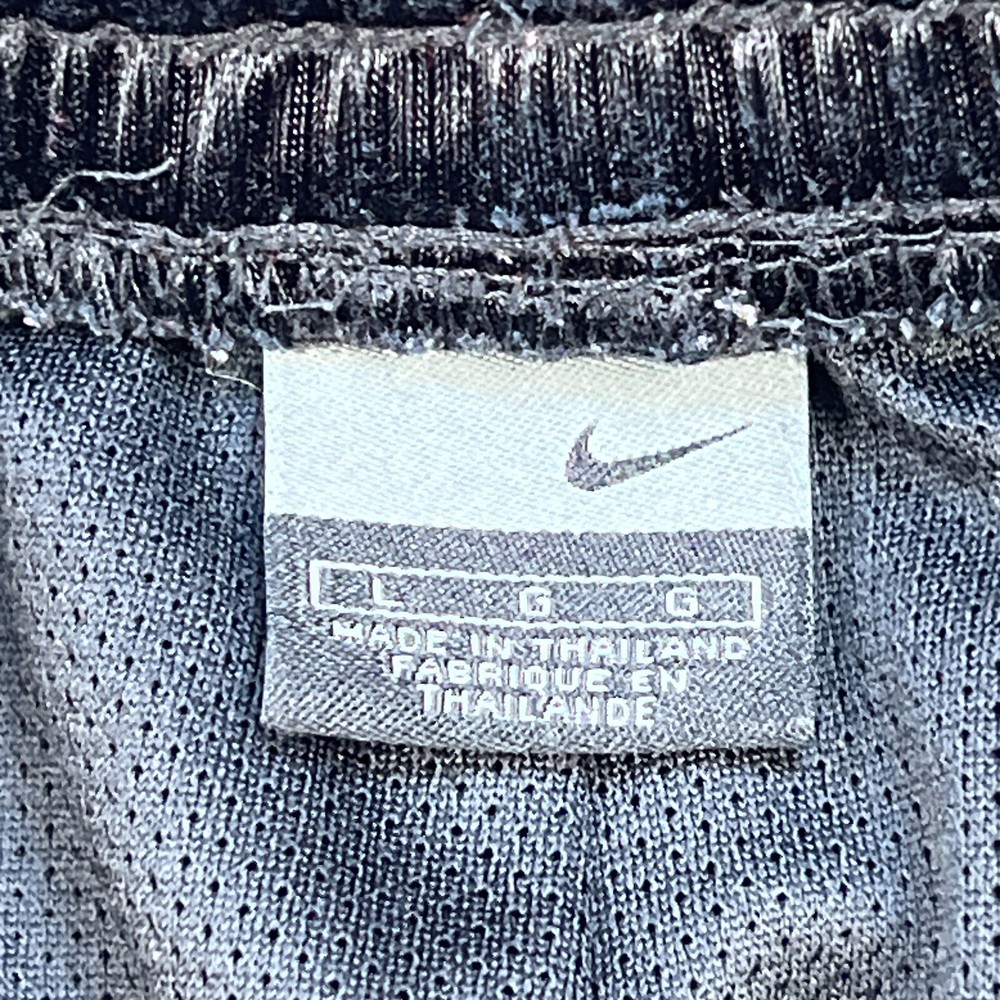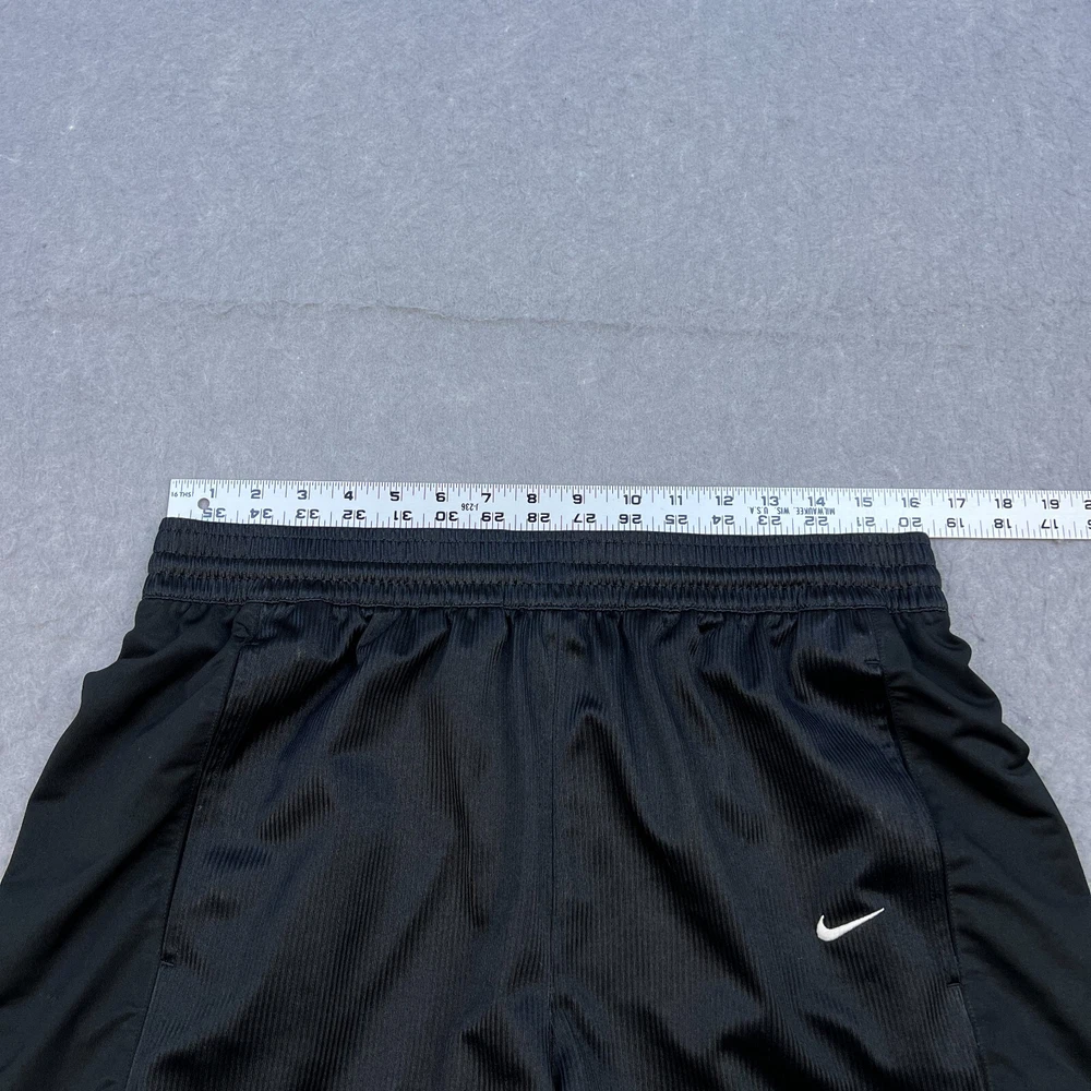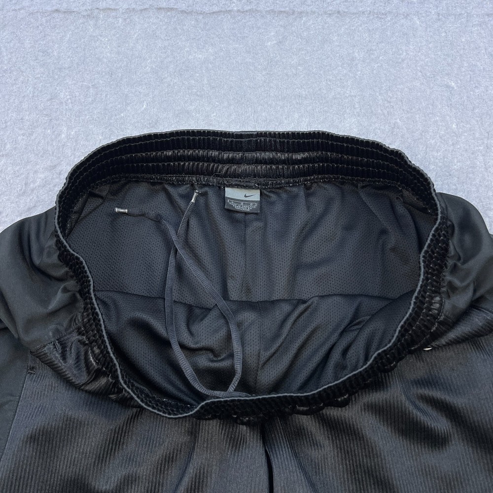 Occasion: Activewear, Casual, Travel Compression Area: Waist Inseam: 10 in Season: Fall, Spring, Summer Color: Black Size Type: Regular Vintage: Yes Features: Comfort, Drawstring, Elastic Waist Pattern: Solid Garment Care: Machine Washable Fit: Classic Department: Men Material: 100% Polyester, Polyester Style: Athletic Fabric Type: Satin Closure: Drawstring Personalize: No Seller Notes: “Good used condition with light wear” Size: L Theme: 90s, American, Classic, Metal, Retro, Sports, Metalic, Shiny Waist Size: 32 in Handmade: No Performance/Activity: Basketball, Hiking, Running & Jogging, School, Skateboarding, Walking, Sports Country of Origin: Thailand Brand: Nike