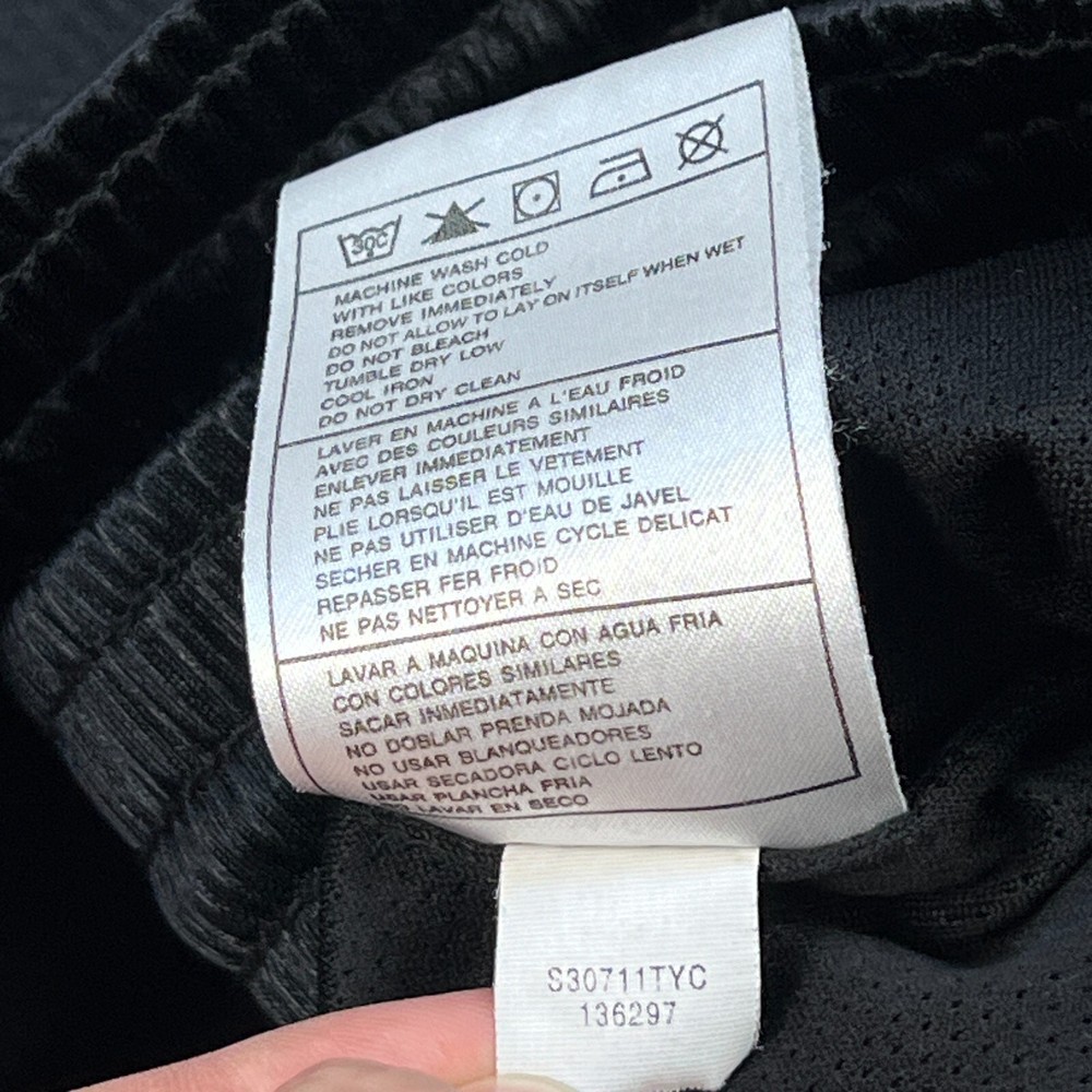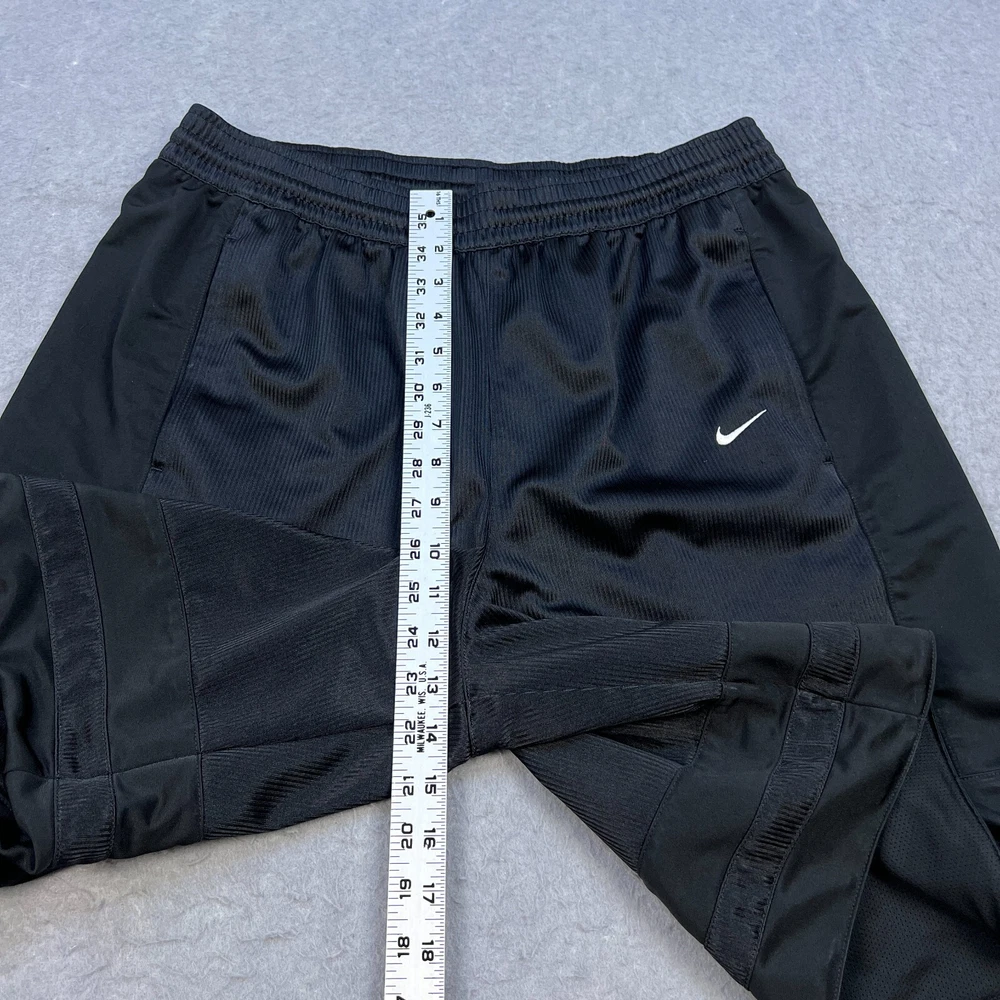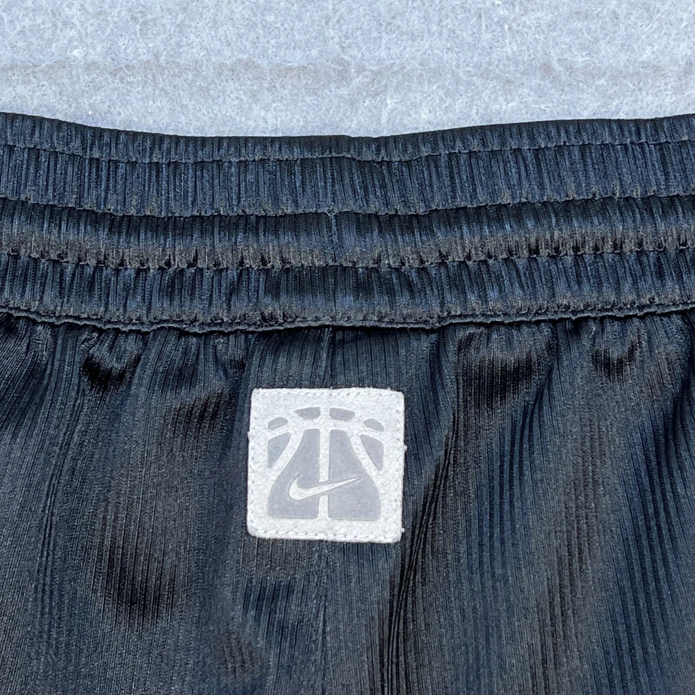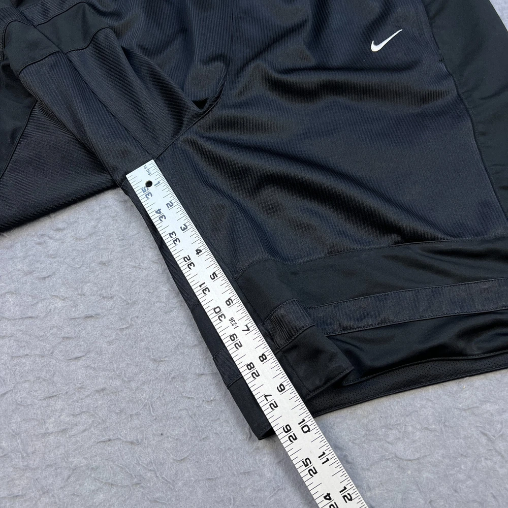 Occasion: Activewear, Casual, Travel Compression Area: Waist Inseam: 10 in Season: Fall, Spring, Summer Color: Black Size Type: Regular Vintage: Yes Features: Comfort, Drawstring, Elastic Waist Pattern: Solid Garment Care: Machine Washable Fit: Classic Department: Men Material: 100% Polyester, Polyester Style: Athletic Fabric Type: Satin Closure: Drawstring Personalize: No Seller Notes: “Good used condition with light wear” Size: L Theme: 90s, American, Classic, Metal, Retro, Sports, Metalic, Shiny Waist Size: 32 in Handmade: No Performance/Activity: Basketball, Hiking, Running & Jogging, School, Skateboarding, Walking, Sports Country of Origin: Thailand Brand: Nike