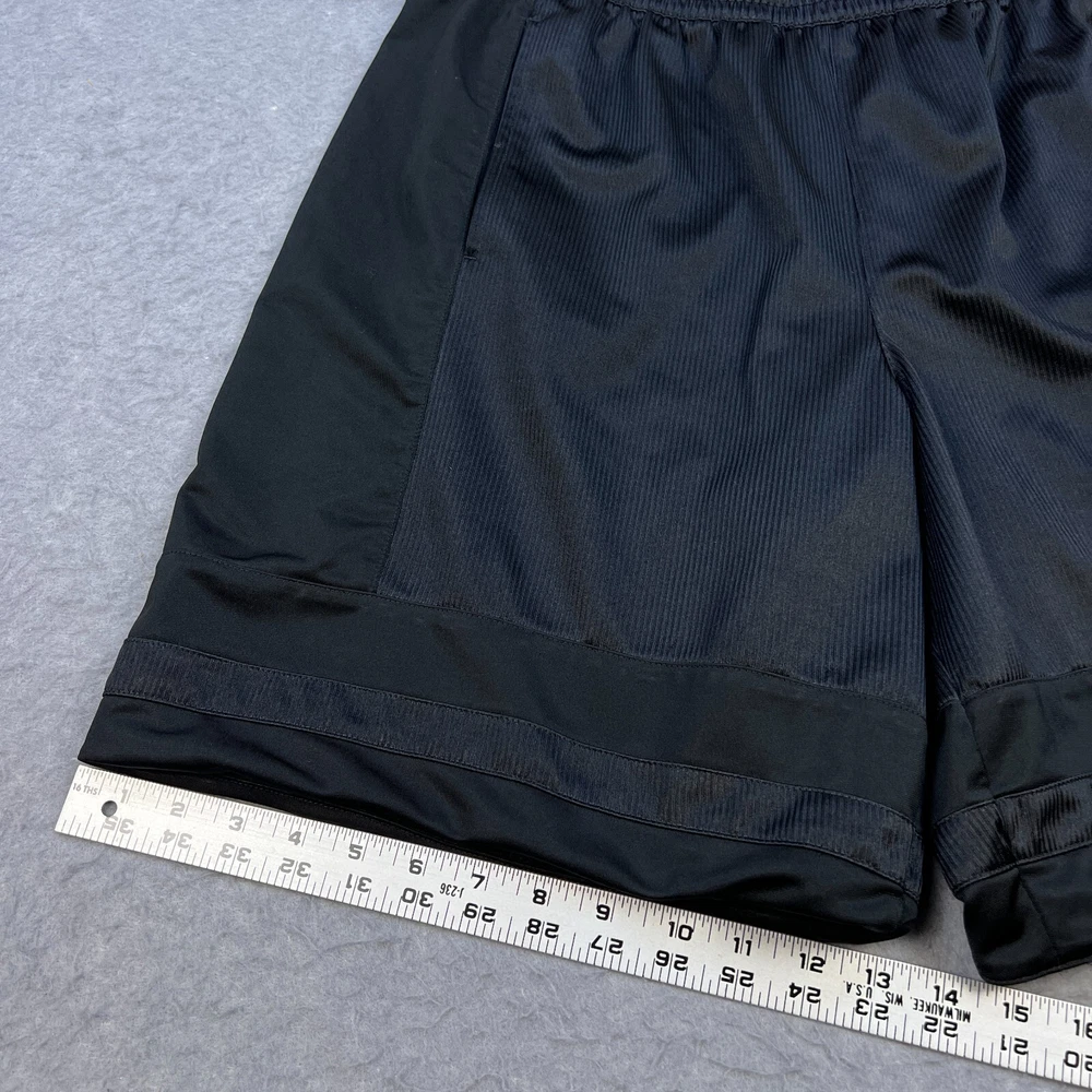 VTG Nike Basketball Shorts Mens L Black Mesh 10" Inseam Swoosh Retro Silver Tag