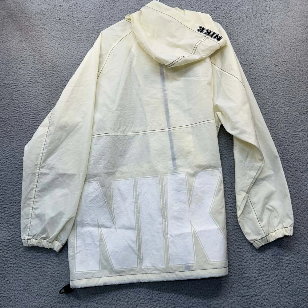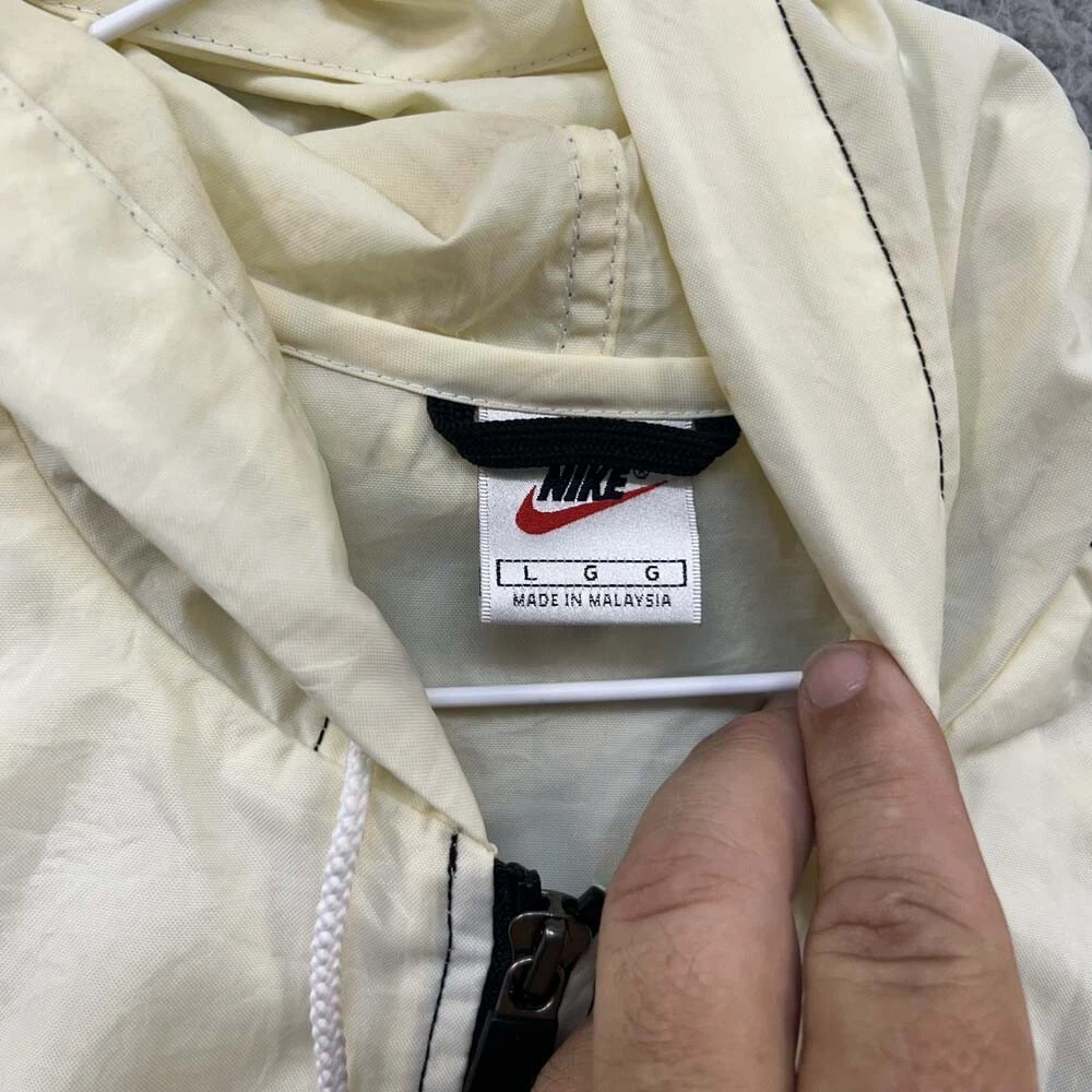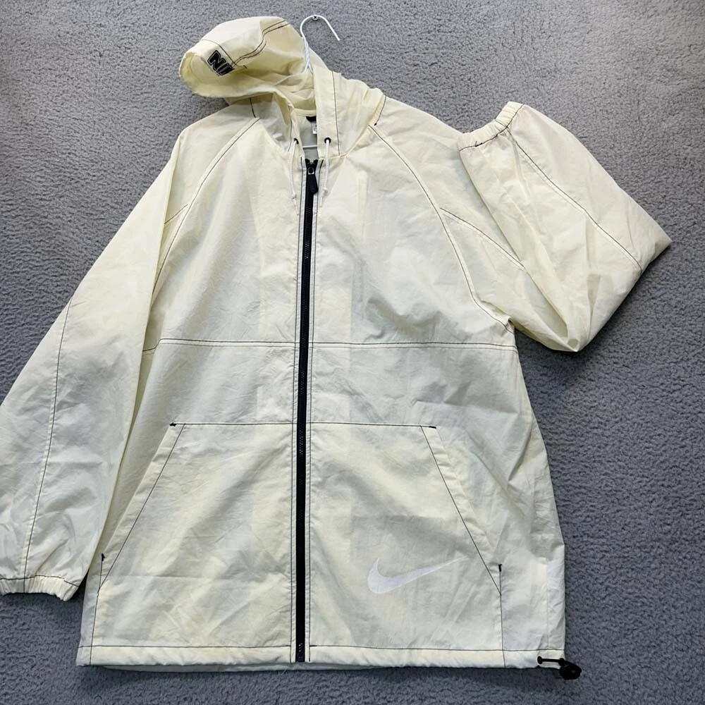 VTG Nike Rain Jacket Mens Large Full Zip Y2k Spellout Ivory White NIKE Hooded