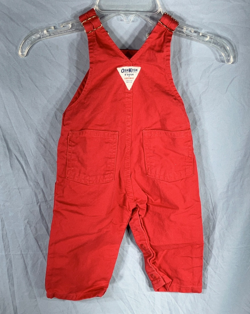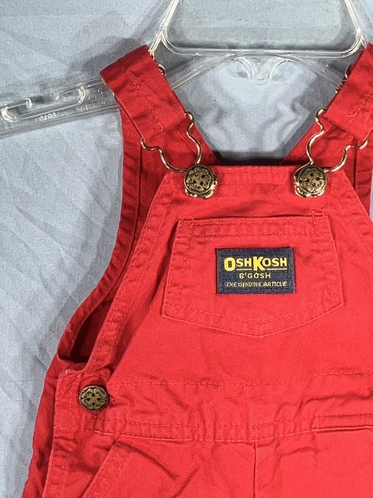 Color: Red Occasion: Casual Sleeve Length: Sleeveless Type: One-Piece Number of Pieces: 1 Piece Vintage: Yes Style: Overall Features: Pockets Size: 6-9 Months Material: 100% Cotton Fabric Type: Denim Department: Unisex Baby & Toddler Brand: OshKosh B’gosh Pattern: Solid