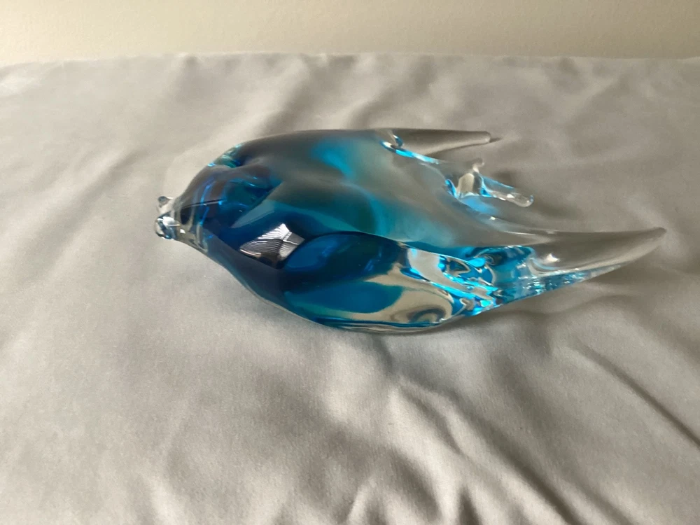 VTG. Oggetti Murano Art glass angelfish sculpture crafted n Murano, Italy. Mid century 1950s. Shimmering blue glass. Excellent condition.