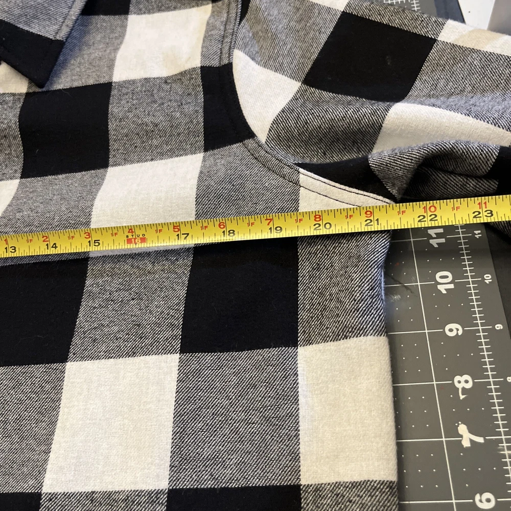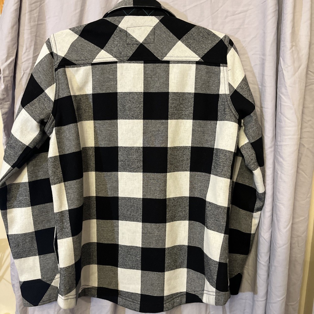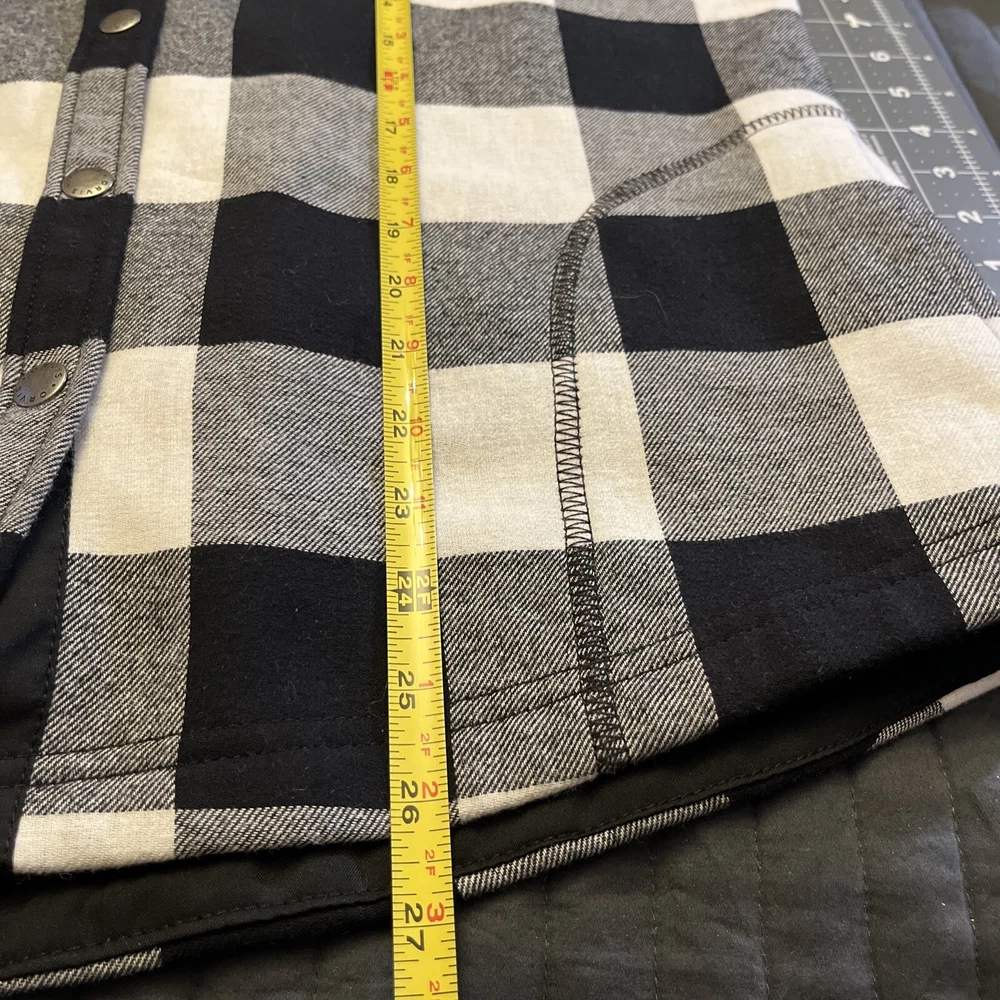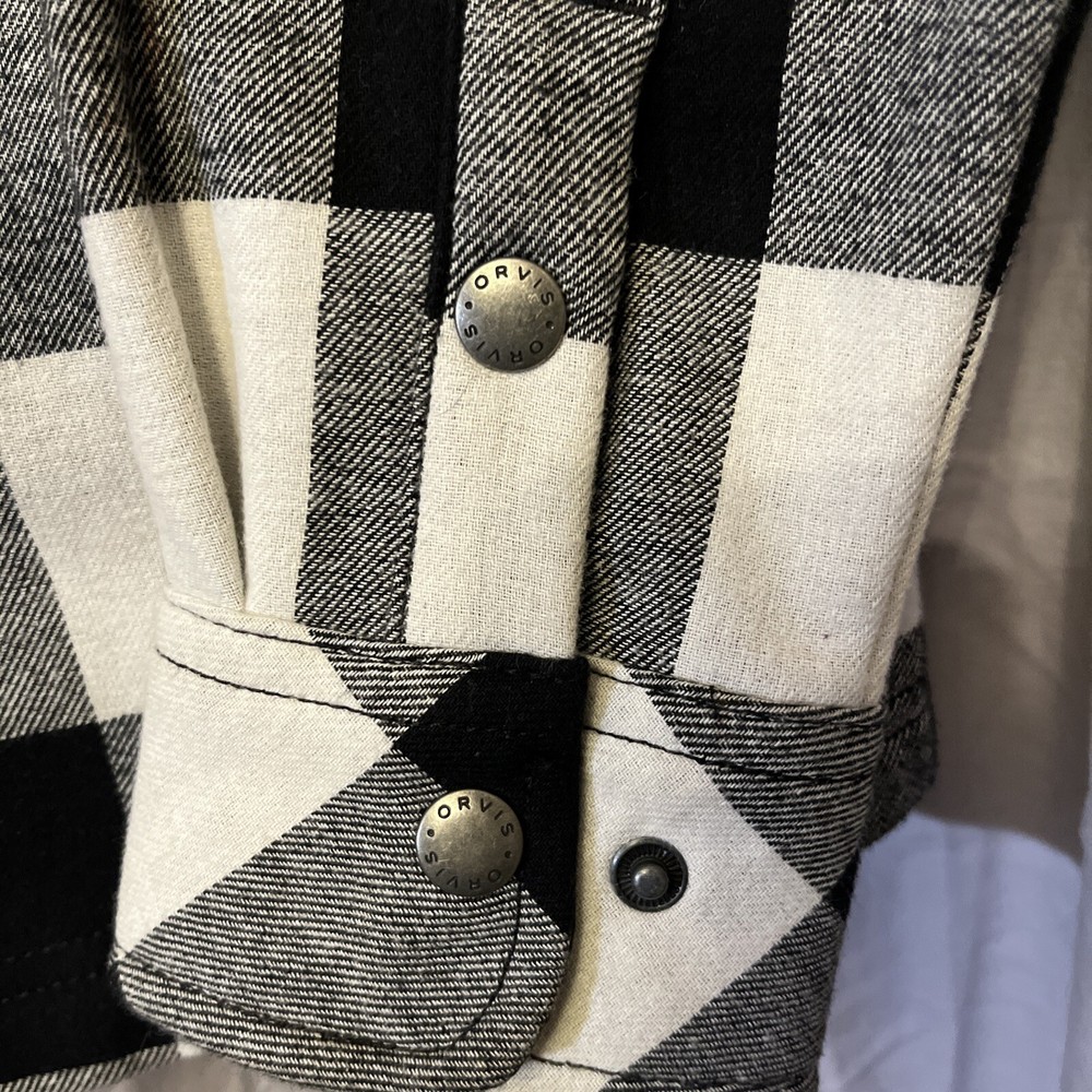 Size Type: Regular Fabric Type: Cotton Exterior/Poly Brand: Orvis Outer Shell Material: Wool Blend Lining Material: Polyester Jacket/Coat Length: Mid-Length Type: Jacket Features: Lined Chest Size: 21” Pattern: Plaid Accents: Snaps Fit: Regular Insulation Material: Polyester Size: M Garment Care: Machine Washable Color: Black Plaid Style: Modern Department: Men Theme: Outdoor Performance/Activity: Hiking, Hunting, Walking, Outdoor Season: Fall, Spring, Winter Occasion: Casual, Travel, Workwear Collar Style: Point Country/Region of Manufacture: Bangladesh Closure: Button