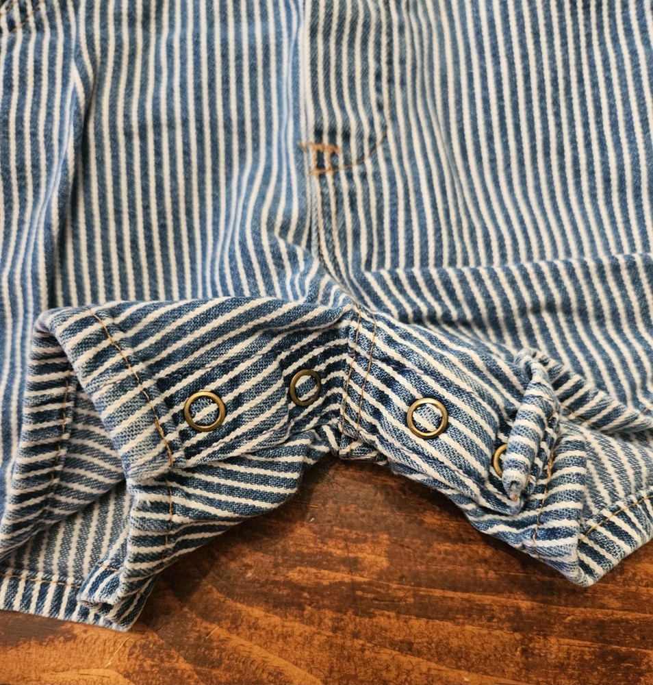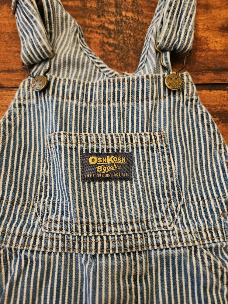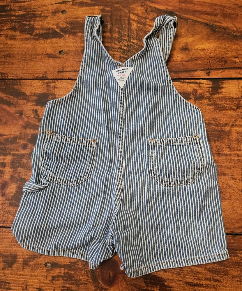 Oshkosh B’gosh Vintage Striped Denim Shorts Bib Overalls 24 Months Blue White In overall excellent pre-owned condition. Please see pictures for details as they are part of the description.