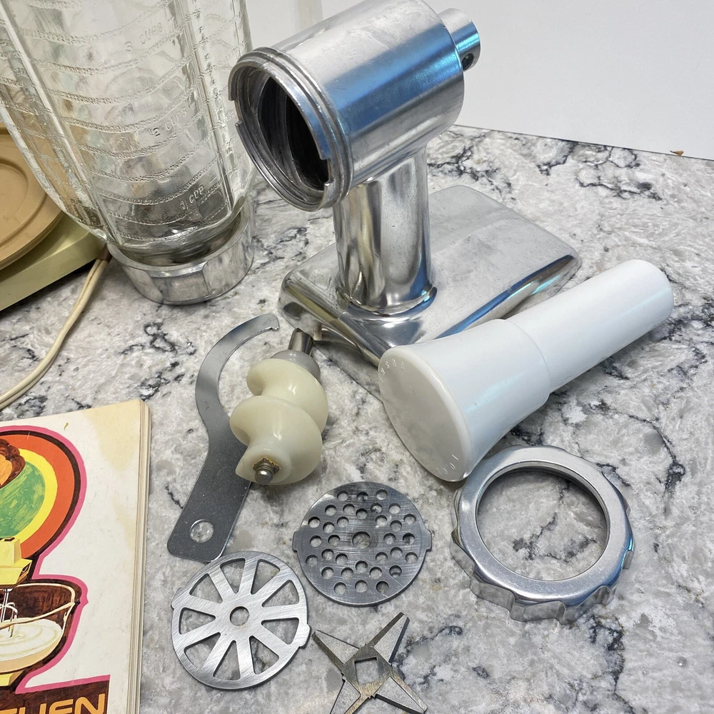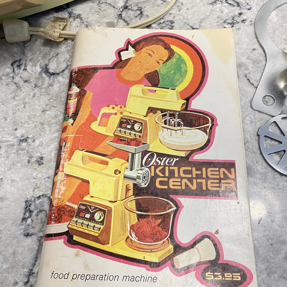 Good used condition. Plugged in, tested and working. Pictures show the actual items you will receive. No bowls included. Please note: This was stored in old basement for years, 2 small boxes for attachments have a light musty odor. Motor base will need to be cleaned. Ships by USPS Ground Advantage. Vintage 12 Speed Oster Kitchen Center System Retro Mixer Grinder Blender Tested Good used condition. Plugged in, tested and working. Pictures show the actual items you will receive. No bowls included. Please note: This was stored in old basement for years, 2 small boxes for attachments have a light musty odor. Ships by USPS Ground Advantage.