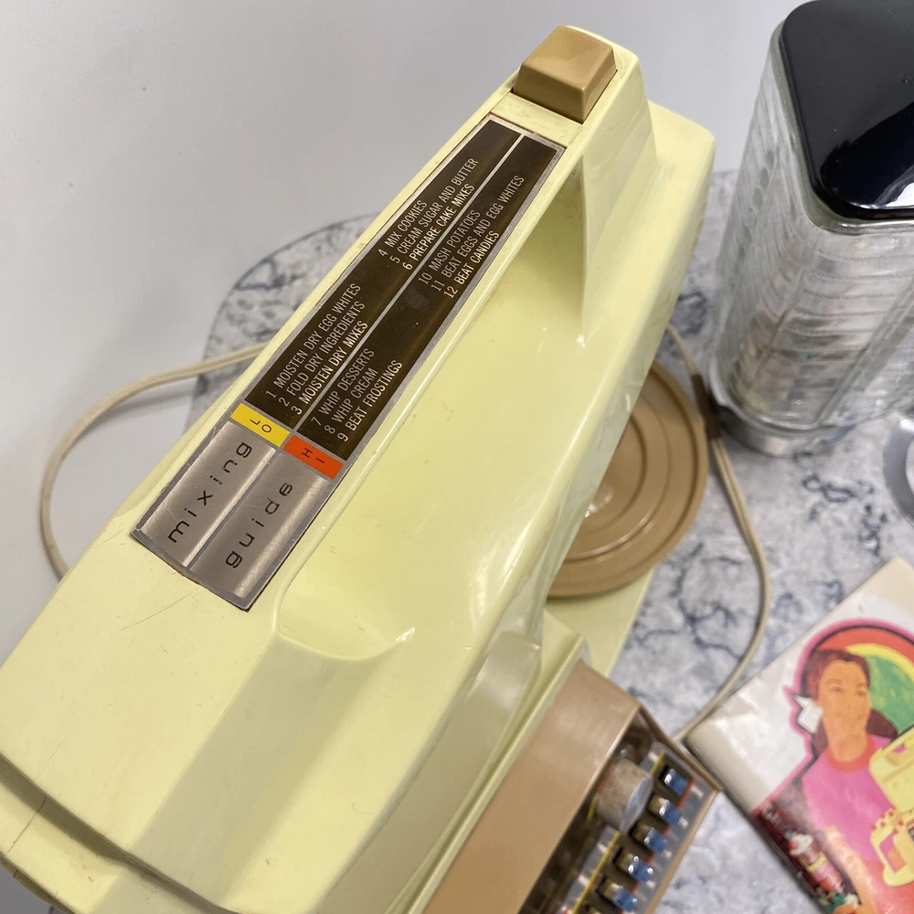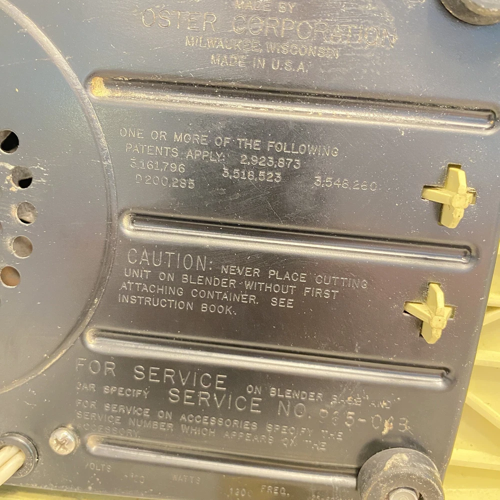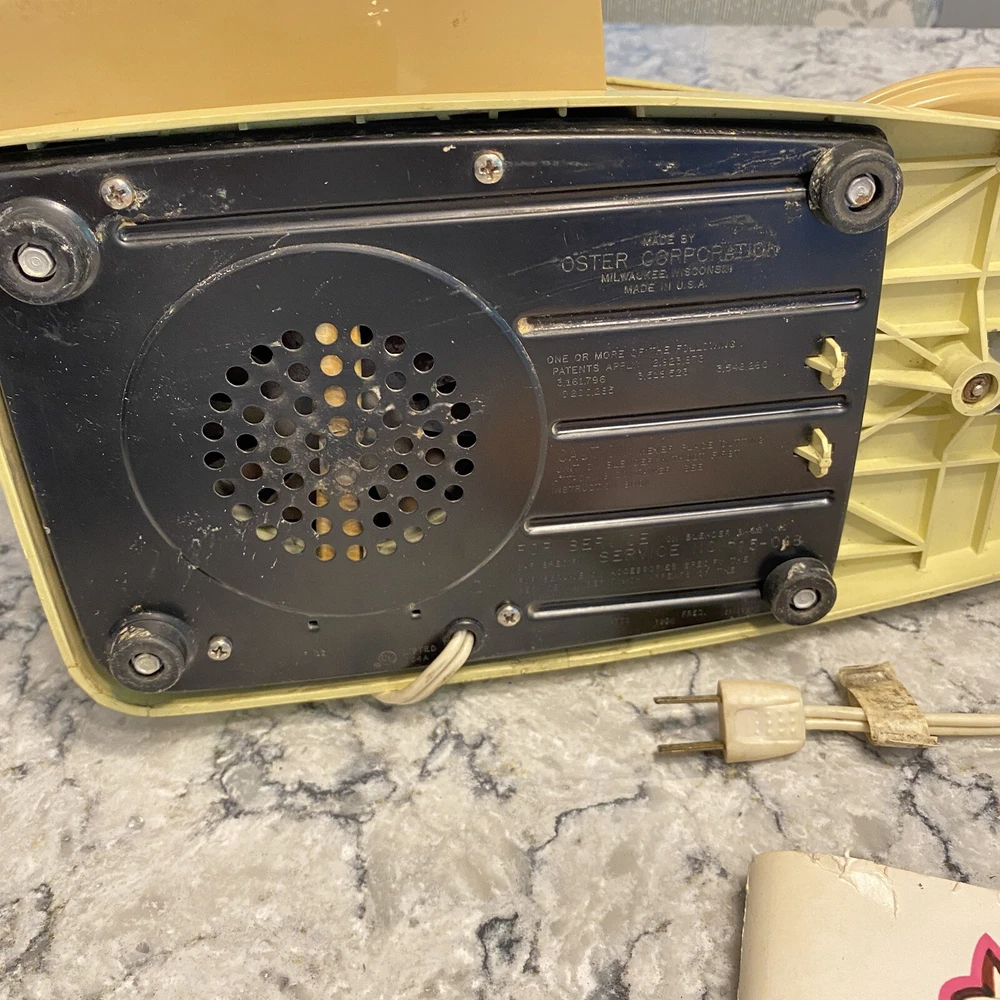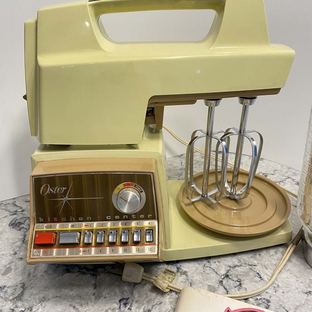 Type: Mixer & accessories Brand: Oster Number of Speeds: 12 Power Source: Electric Country/Region of Manufacture: United States Number of Settings/Programs: 12 Components Included: Base, Grinder, Mixer, Motor Base Seller Notes: “Tested and working.” Model: Oster Regency Center Color: Yellow
