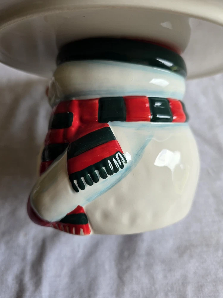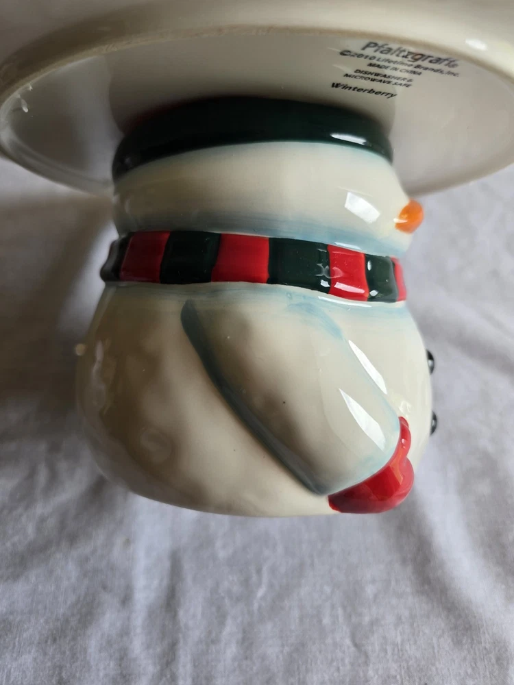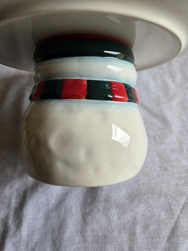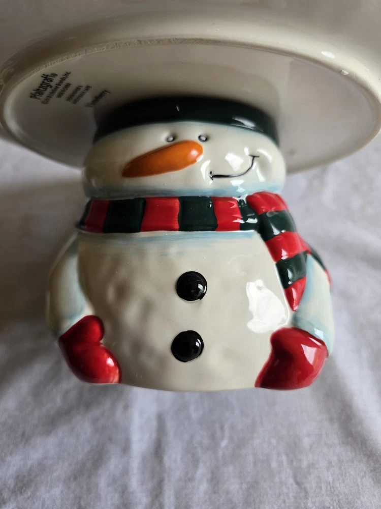 Material:CeramicHandmade:NoNumber of Items:1Finish:GlossyShape:RoundPattern:snowmanOccasion:ChristmasType:Cake StandItem Height:5-1/2 inItem Diameter:11 inProduct Line:unknownCountry/Region of Manufacture:ChinaProduction Style:Art PotteryBackstamp:PrintedAntique:NoTime Period Manufactured:2010-2019Features:Decorative, Easy to CleanColor:MulticolorVintage:NoBrand:PfaltzgraffTheme:ChristmasYear Manufactured:2010Production Technique:Pottery