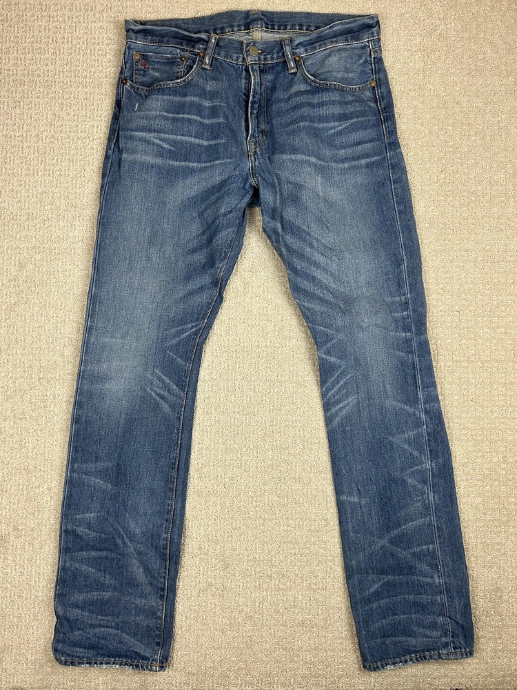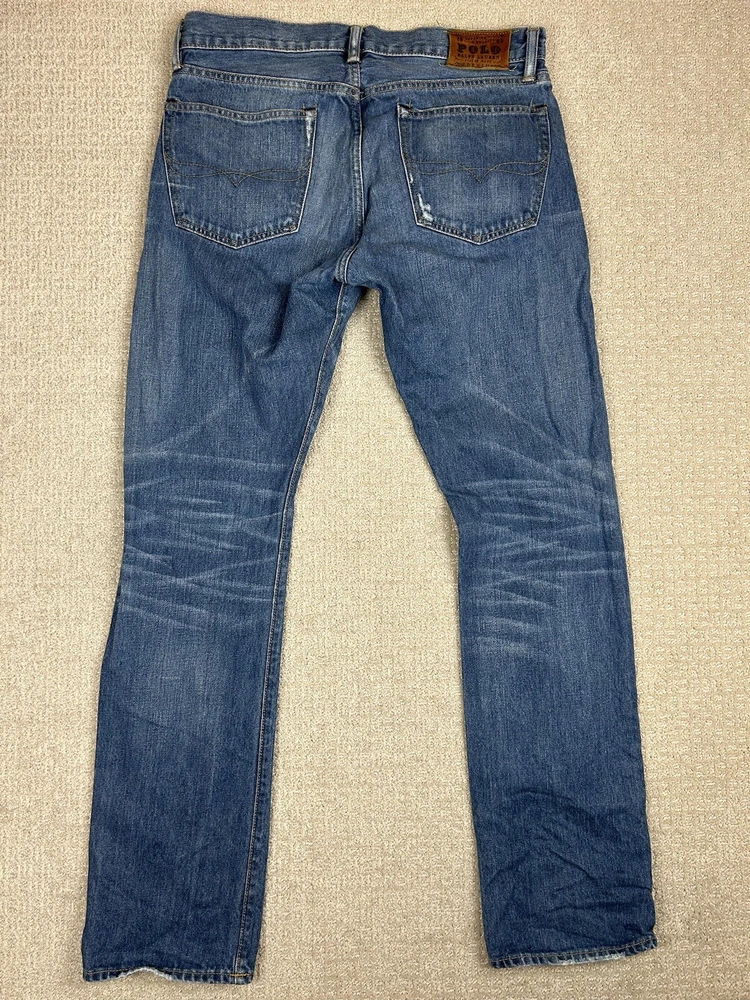 This pair of Polo Ralph Lauren jeans is a must-have for any fashion-conscious man. The slim straight fit is perfect for any occasion, and the medium wash denim fabric gives it a classic 90s look. The whiskered detailing adds a touch of preppy style, making it a versatile addition to any wardrobe. Crafted from high-quality cotton fabric, these jeans are both comfortable and durable. The 32-inch waist size and 32-inch inseam make it a great choice for men of all sizes. These jeans are perfect for any casual event, and the slimming feature ensures a flattering fit.